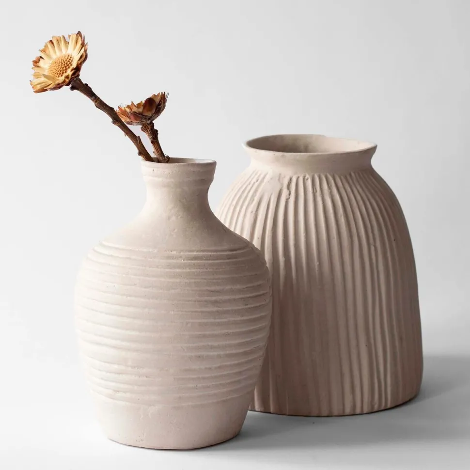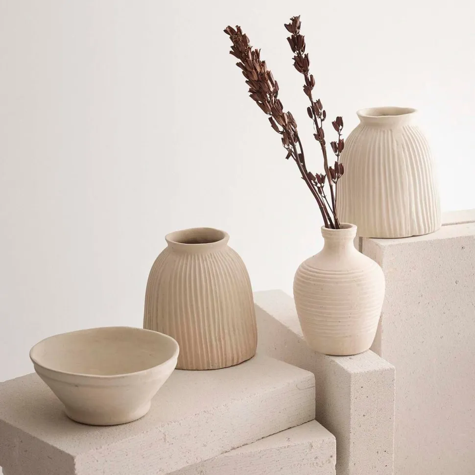 Potten tåler ej vand eller fugt, men fungerer som et dekorativt element, der tilfører en sanselig og organisk fornemmelse.