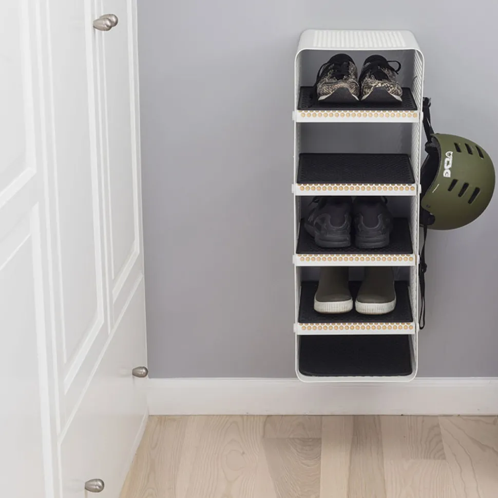 Lækre og praktiske måtter, der er fremstillet af gummi. Med de smarte måtter undgår du, at jord fra dine såler drysser ned på skoene på hylden nedenfor. Derudover forbliver din skoreol fra Tica Cph i pæn stand, da du skåner reolen for slid med gummimåtterne.