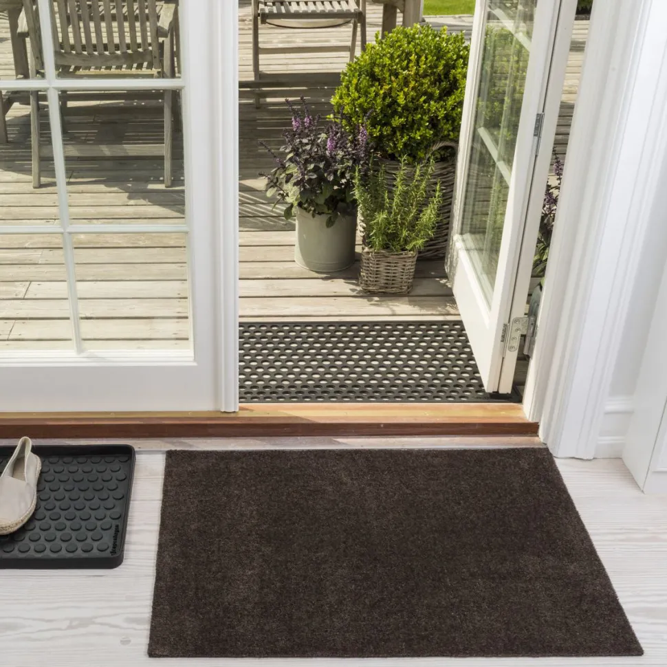 Moderne og tidløs måtte, som fungerer helt optimalt i forlængelse af et indgangsparti – eksempelvis i éntreen. Smudsmåtten er udført i et mininalistisk design, hvilket åbner op for et utal af anvendelses- kombinationsmuligheder. Måtten er produceret i 100% polyamid, hvilket er et blødt og slidstærkt materiale, der virker med at suge vand, fugt og snavs. Bagsiden er beklædt af PVC for herved at sikre stabilitet.