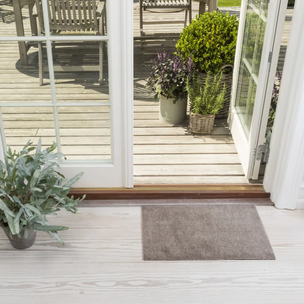 Smart og praktisk dørmåtte i den fineste farvenuance, som er helt ideel til et indgangsparti. Smudsmåtten er udført i et stilfuldt design, hvorfor den – foruden sin primære funktion – tilmed fungerer som et dekorativt element i entréen. Måtten er produceret i 100% polyamid, hvorfor den både er blød og slidstærk samtidig med at den suger vand, fugt og snavs. Bagsiden er fremstillet af PVC, hvorfor den ligger stabilt på gulvet.