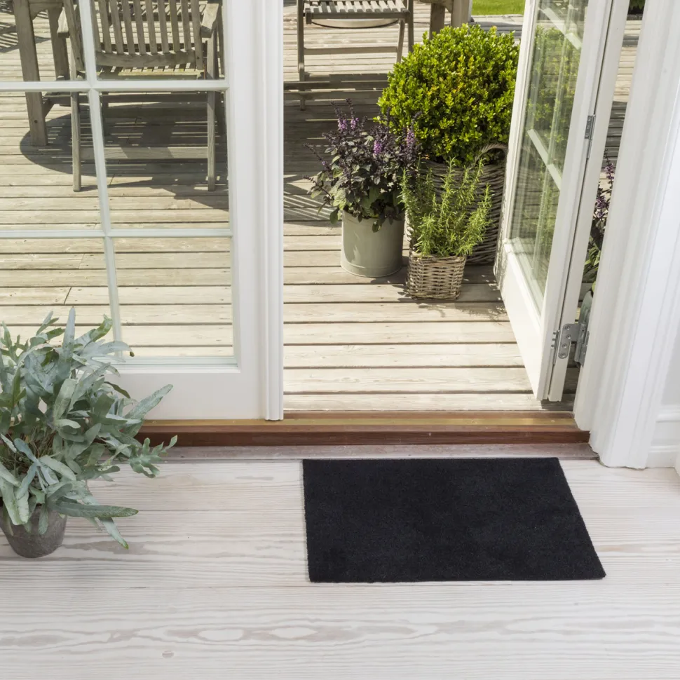 Enkel og praktisk smudsmåtte, som – foruden sin primære funktion- pynter smukt i entréen. Måtten er produceret i 100% polyamid, hvilket er et blødt og slidstærkt materiale, hvis egenskab tilmed er at suge vand, fugt og snavs. Bagsiden er fremstillet af PVC, hvilket resulterer i, at den ligger stabilt og sikkert på gulvet. Rengøringen af måtten er enkelt, idet den både kan rengøres med en støvsugning, skylning eller maskinvask på 30 grader.