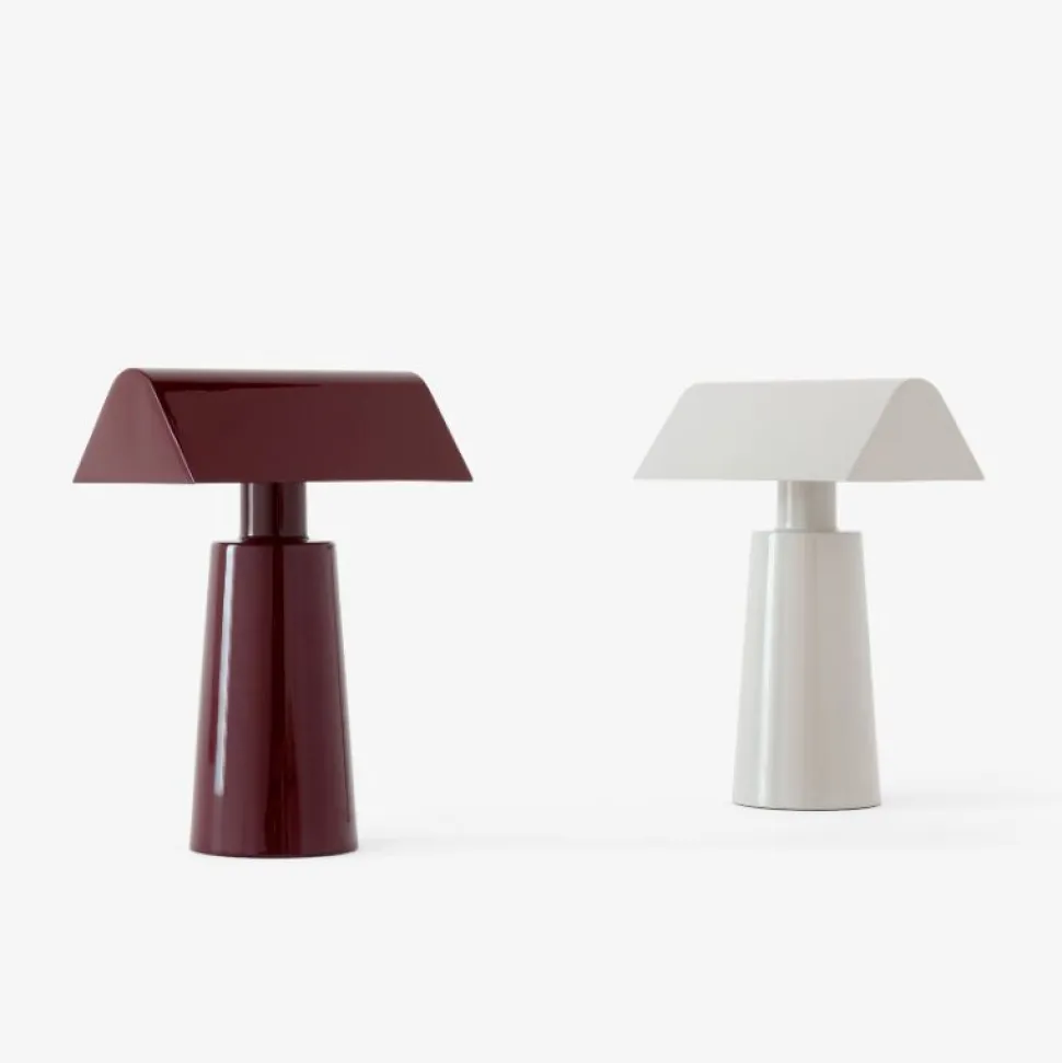 En praktisk løsning på de stadigt mere slørede grænser mellem arbejde og hjem, den bærbare Caret genskaber de lineære silhuetter af de klassiske, grønskyggede designs – kendt som ‘bankers lamper’ – som findes i historiske biblioteker. Fremstillet udelukkende af lakeret stål, designet har en afrundet bund og en lang, pyramideformet top, der udsender et blødt, diffust lys. Lampen kommer i to nutidige farver: Mørk Bourgogne og Silkegrå.