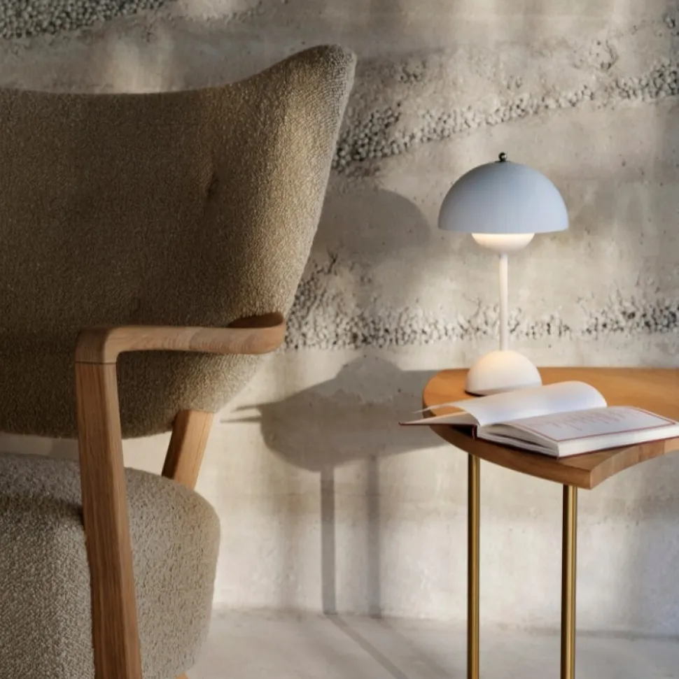 Seneste tilføjelse til den populære Flowerpot-serie er denne bærebare VP9. Lampen er designet med en berøringsdæmper på tre niveauer og er tilmed udstyret med et USB-opladerkabel. Bordlampen er designet af Verner Panton, som var en af de mest fremadrettede talenter i sin tid. Tankegangen bag designet var, at omfavne en mere åben, moderne mentalitet, som fremmede fred og harmoni – hvilket lampen afspejler.