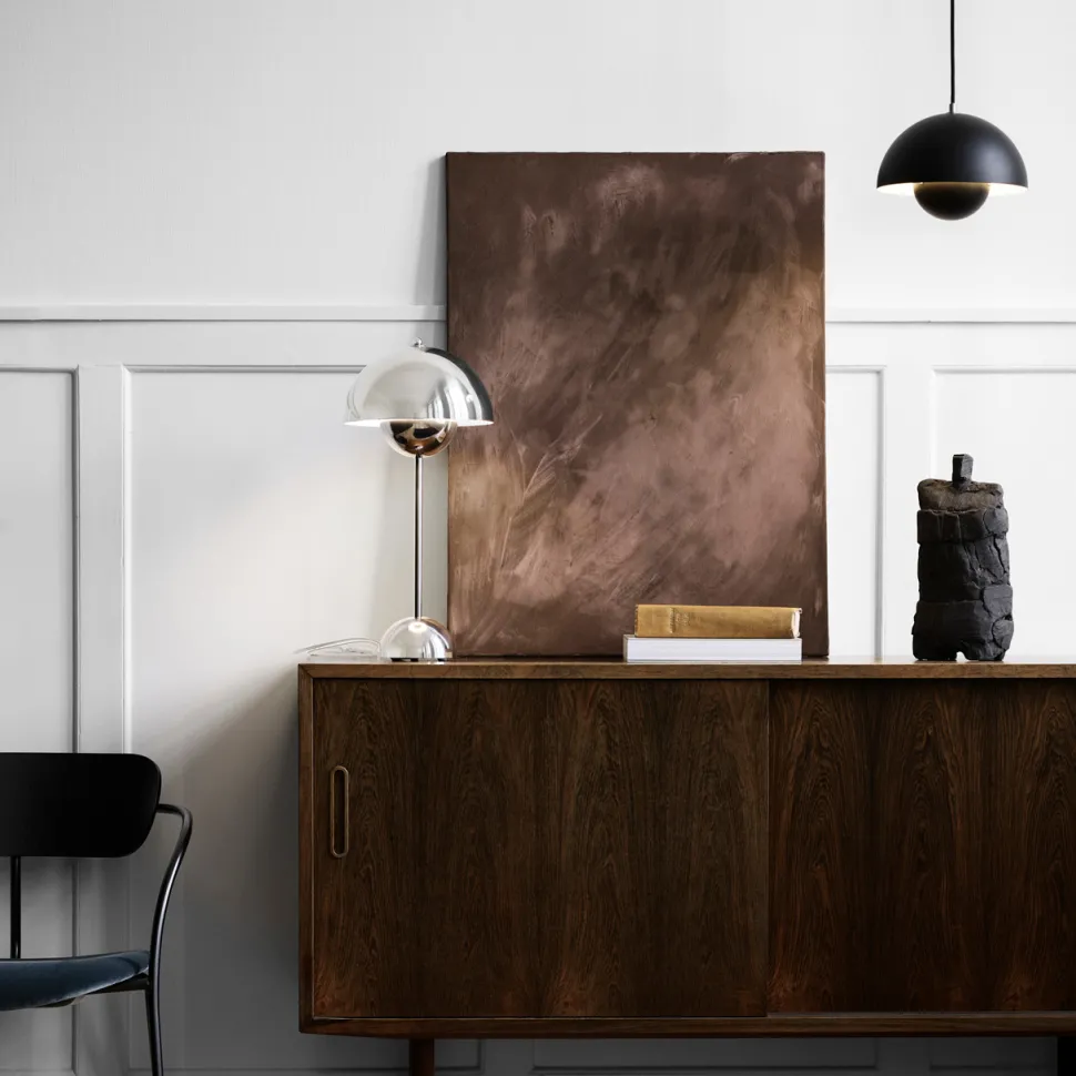 Inspirationen til den populære Flowerpot-serie har grobund i den farverige Flower Power-bevægelse fra slutningen af 1960’erne. Lampen er designet af Verner Panton, som var en af de mest fremadrettede talenter i sin tid. Tankegangen bag designet var, at omfavne en mere åben, moderne mentalitet, som fremmede fred og harmoni – hvilket lampen afspejler.
