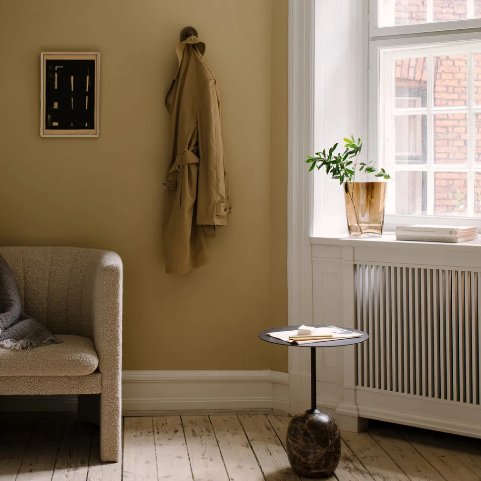 Materiale: Marmor fod med plade i pulverlakeret stål i farven Warm black.