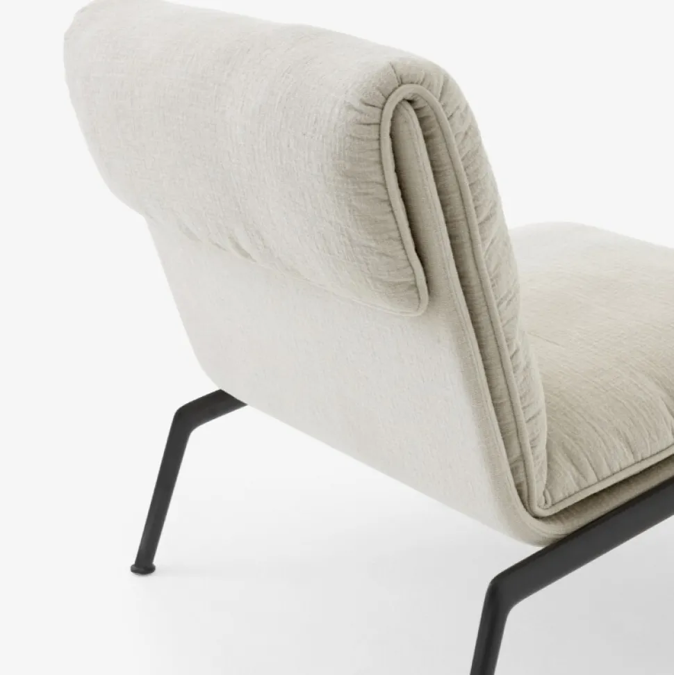Kendetegnet ved sine plyspuder og slanke, støbte aluminiumsben, tilbyder Muno loungestolen den samme overbevisende oplevelse som sin højere modstykke i en mere kompakt form. Ved at have en enkelt hynde ser stolens sæde og ryglæn ud, som om den var draperet over stellet for at opnå et afslappet, men elegant udtryk.