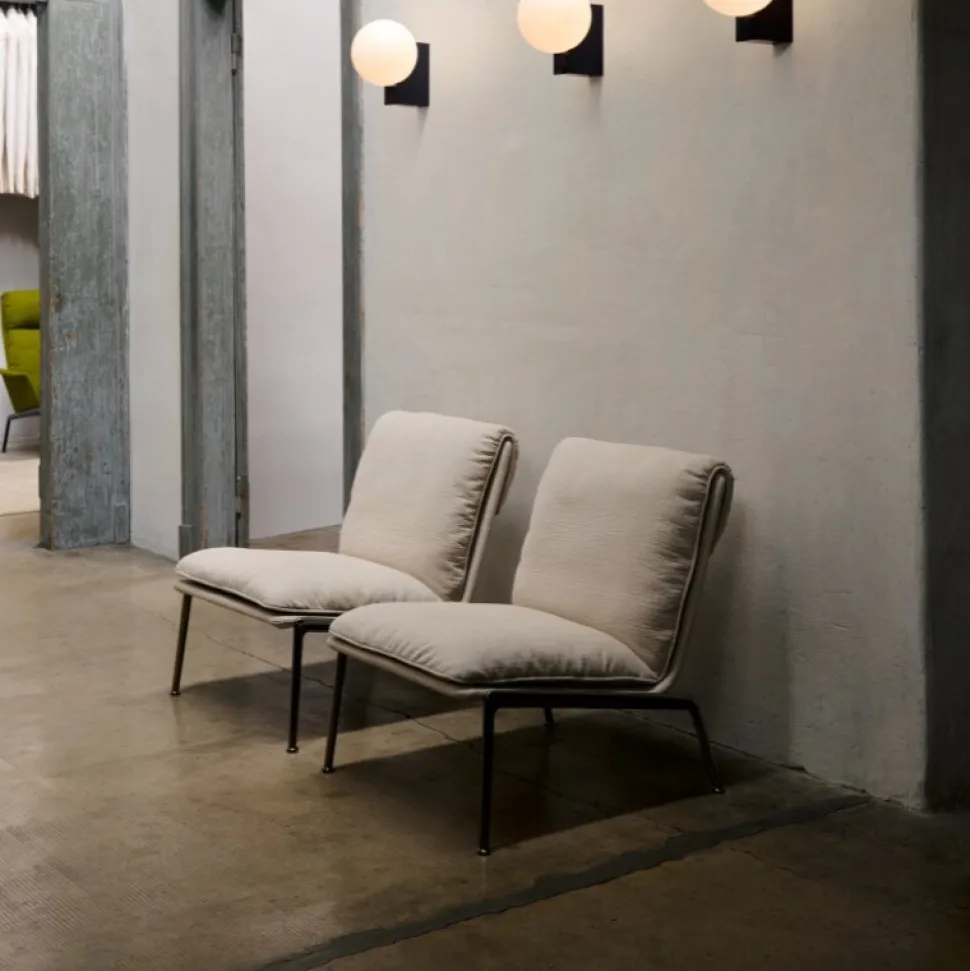 Kendetegnet ved sine plyspuder og slanke, støbte aluminiumsben, tilbyder Muno loungestolen den samme overbevisende oplevelse som sin højere modstykke i en mere kompakt form. Ved at have en enkelt hynde ser stolens sæde og ryglæn ud, som om den var draperet over stellet for at opnå et afslappet, men elegant udtryk.