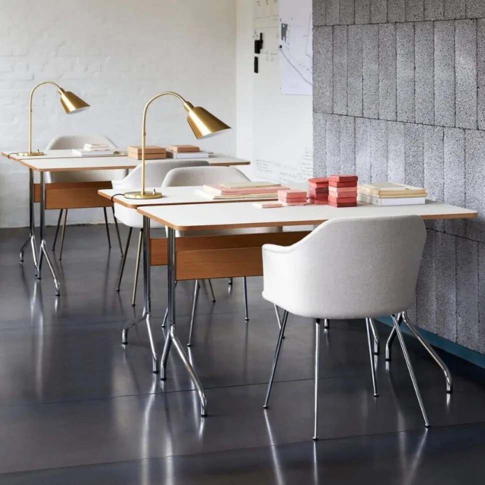 Med Pavilion-skrivebordet har den prisvindende designduo Anderssen & Voll videreført det lette og poetiske formsprog fra deres ikoniske Pavilion-stol. Inspirationen er hentet fra det historiske Langelinie Pavilion i København, og det ses tydeligt i skrivebordets elegante, svævende udtryk.