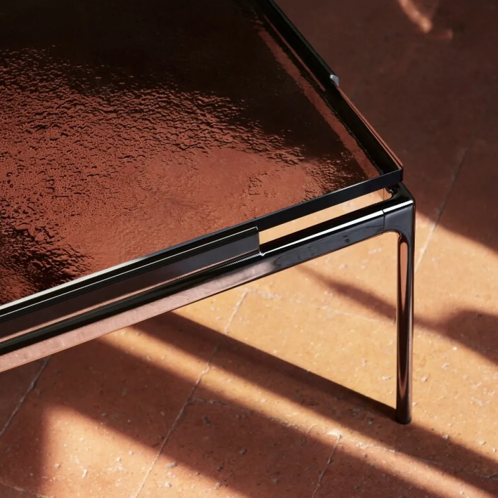 Bordplade: Røgfarvet støbt glas.