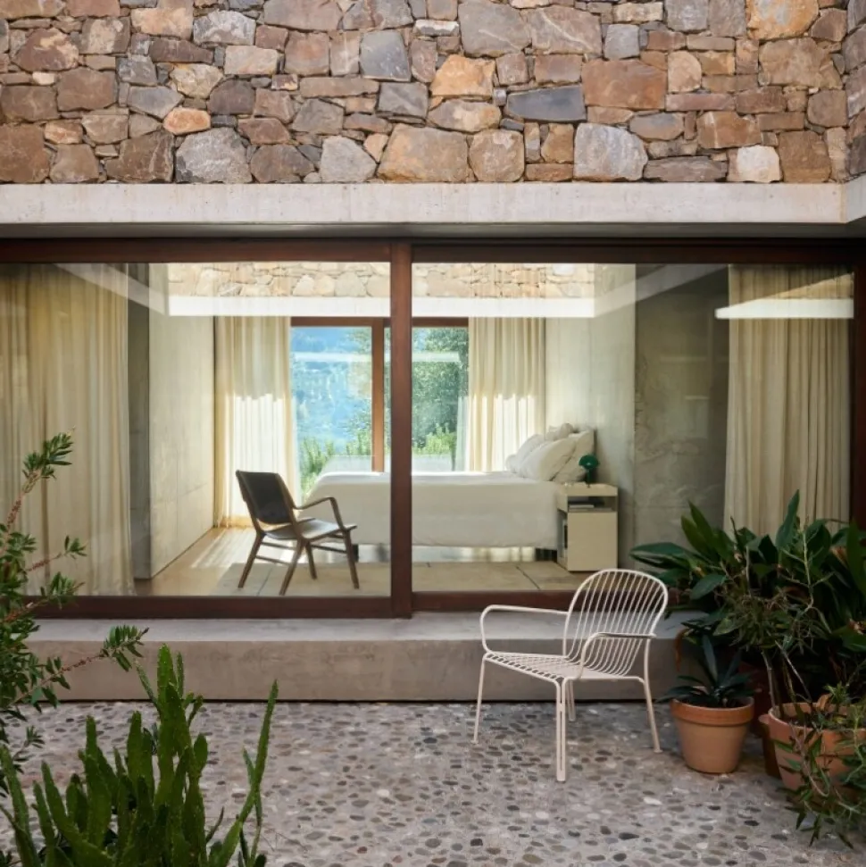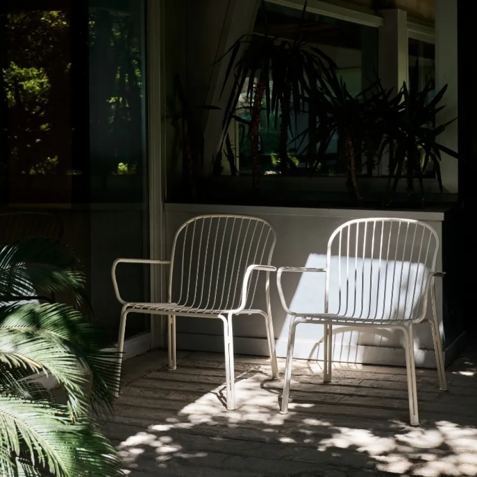 Smuk havestol, som blander friluftsliv med skulpturelle silhuetter. Gitteret i sæde og ryg giver et smukt samspil mellem lys og skygge. Stålstellet sætter scenen for en smuk, behagelig og stabelbar havestol. Stolen kan forenes med en matchende hynde for størst mulig siddekomfort.