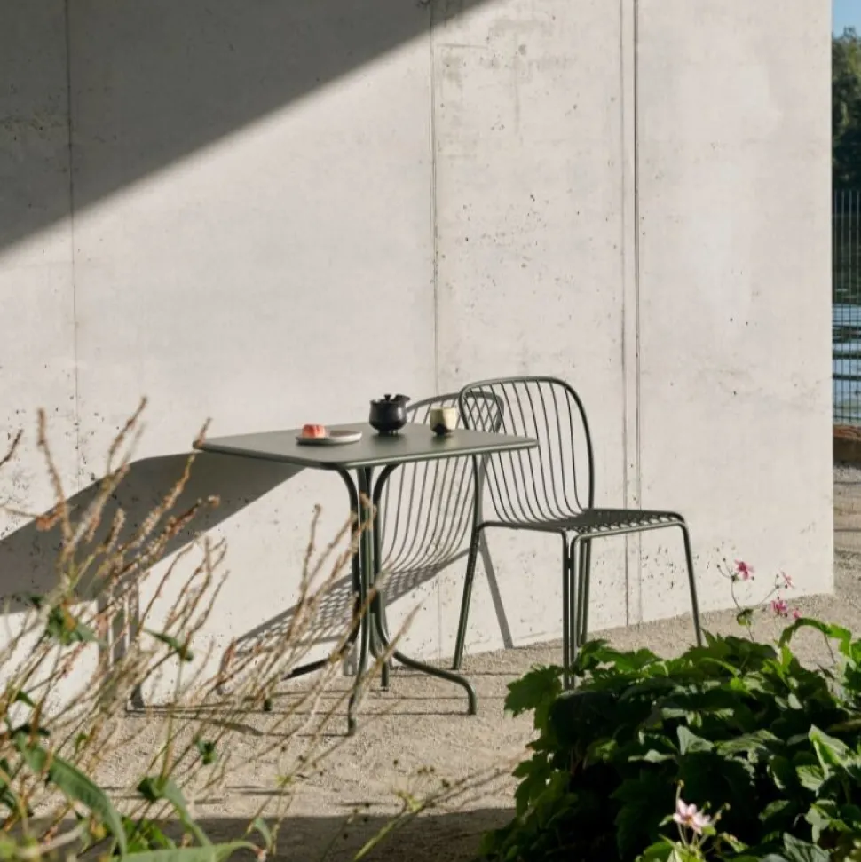 Elegant havestol, som blander friluftsliv med skulpturelle silhuetter. Gitteret i sæde og ryg giver et smukt samspil mellem lys og skygge. Stålstellet på den stabelbare stol sætter scenen for en lækker og alsidig havestol. Stolen kan forenes med en matchende hynde for størst mulig siddekomfort.