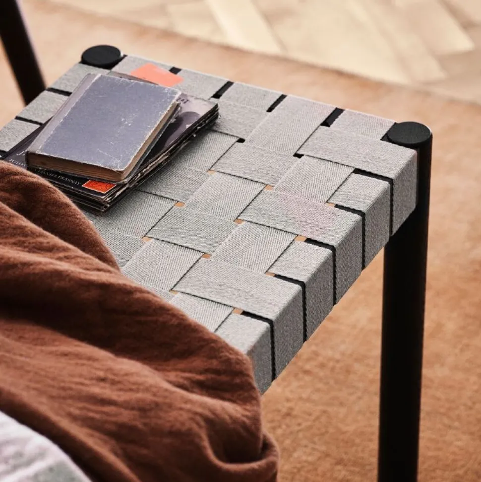 Materiale: Massivt træ, formpresset træfinér, naturligt hør og PP (polypropylen) bånd.