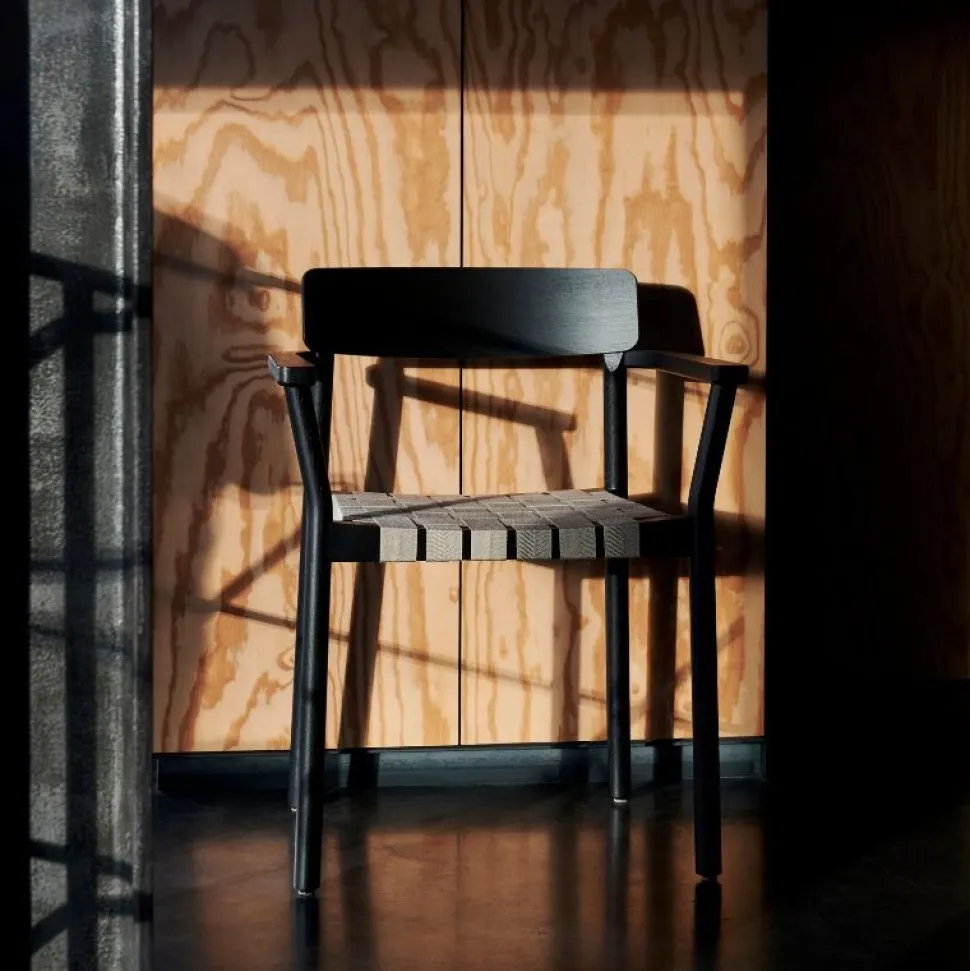 Materiale: Massivt træ, formpresset træfinér, naturligt hør og PP (polypropylen) bånd.
