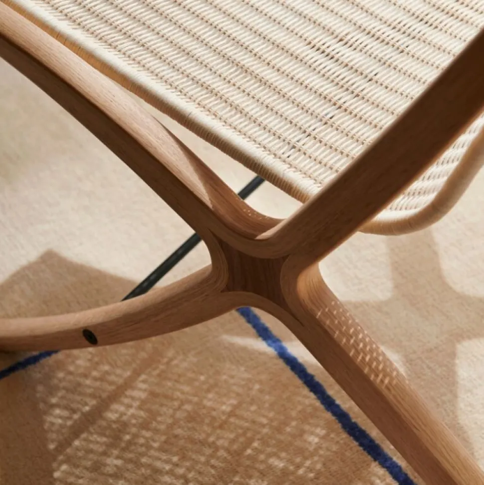 X-loungestolen viser et elegant forhold mellem materiale og koncept og repræsenterer Hvidt & Mølgaards højdepunkt som møbeldesignere. Efter i årevis at have eksperimenteret med konceptet med et lamineret træstel inspireret af gamle tennisketchere i træ, udgav den danske designduo Hvidt & Mølgaard i 1959 X, en loungestol med en markant skrå silhuet og diskret æstetik.