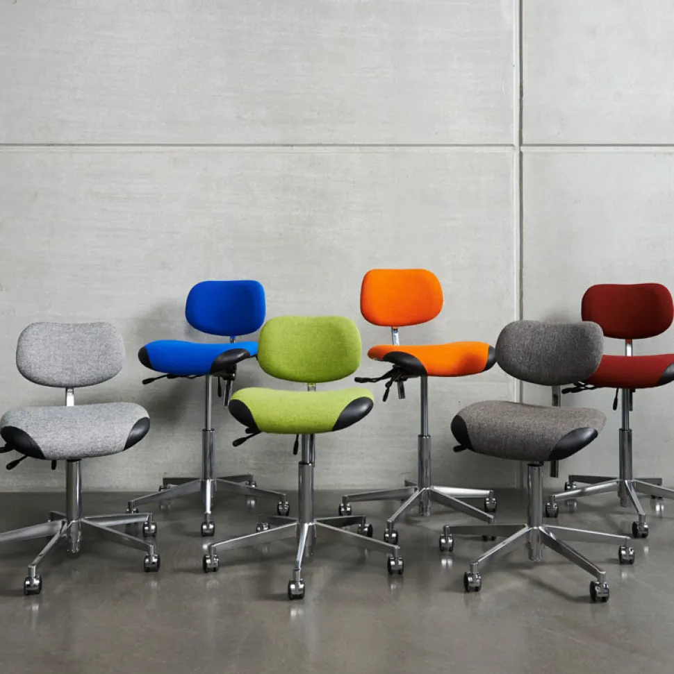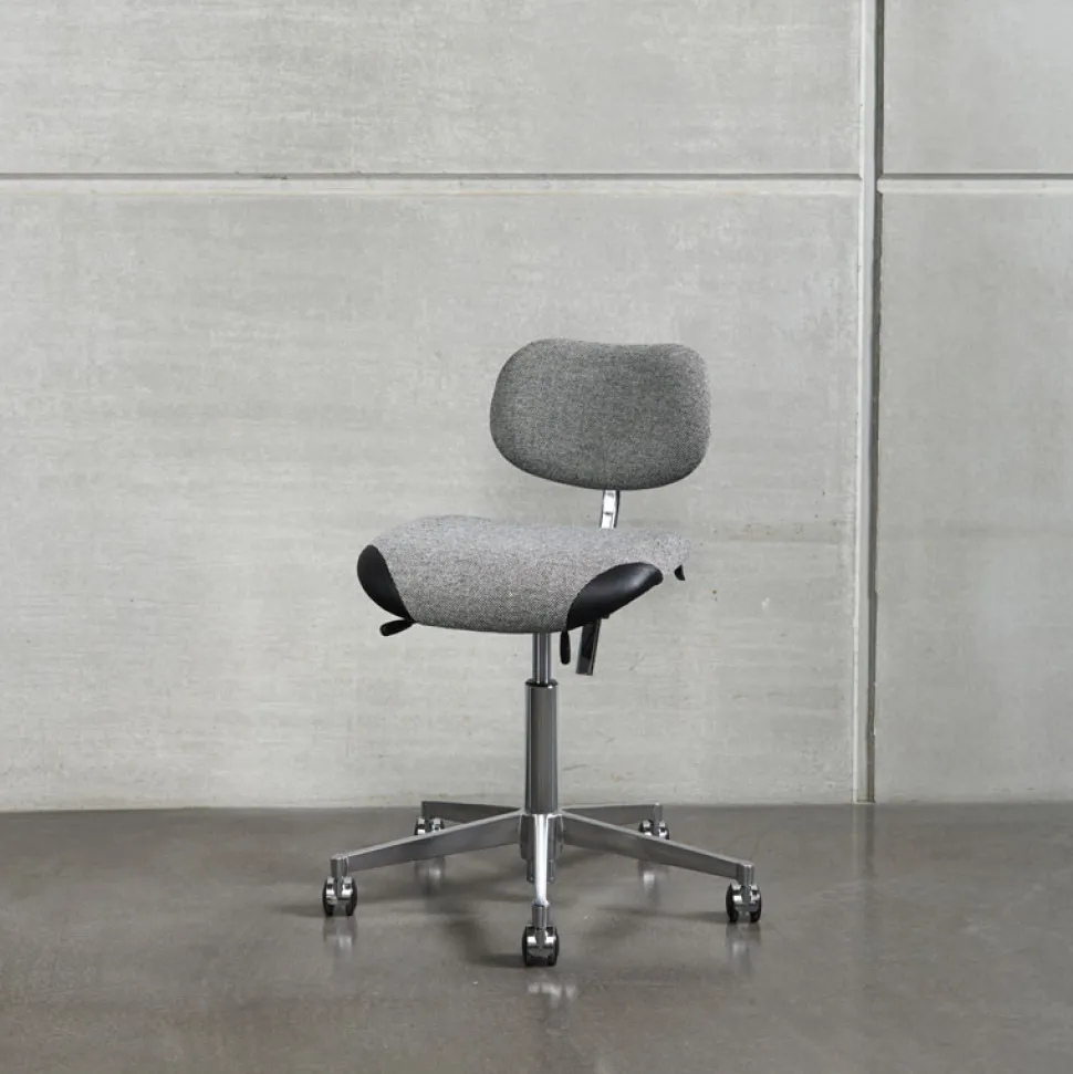 Stolen har en siddehøjde på 44-64 cm, som kan justeres ved hjælp af grebet for højderegulering. Herudover er der greb for sædevinkling, rygregulering og lændestøtte.