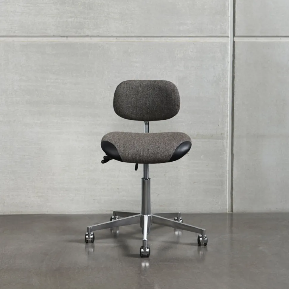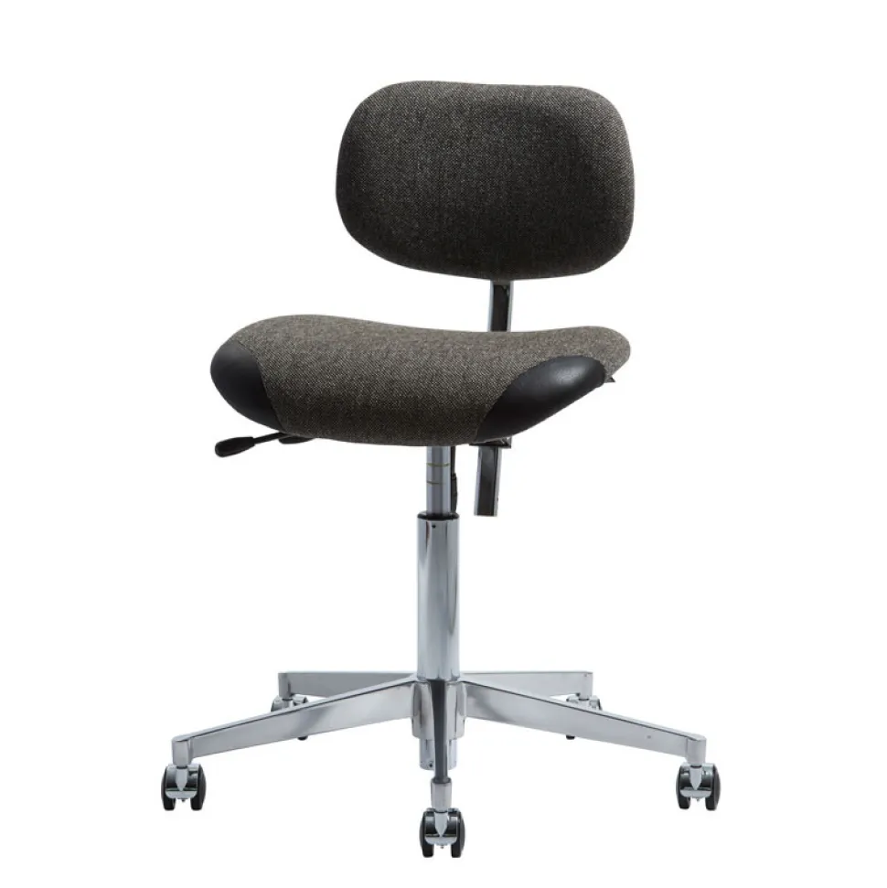 Stolen har en poleret alu fod, som er Ø 64 cm. Herudover har stolen 5 hjul a 50 mm.