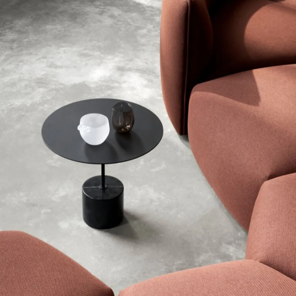 Designet af det Berlin-baserede studie, Böttcher & Kayser. Calibre serien omfatter tre borde i højder og forskellige størrelser. Den cylindriske base er lavet i Nero Marquina-marmor, som sikrer et stabilt sidebord, der tilføjer et strejf af raffinement til ethvert rum. Marmorbasen medvirker til eksklusiviteten ved Calibre serien, da hvert bord har sin egne enestående særpræg i både farve og mønster.