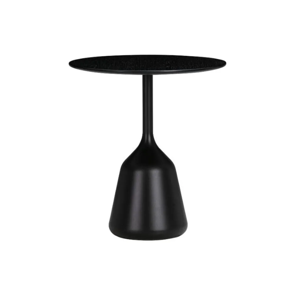 Elegant sidebord med rummelige former. Coin-serien fusionerer cirkulære og kegleformede komponenter. Coin er et geometrisk minimalistisk sidebord som smelter sammen, mens det skiller sig ud. Basen er støbt i sort pulverlakeret aluminium og pladen er af sortbejdset egefinér. Coin serien omhandler seks sideborde og seks spiseborde.