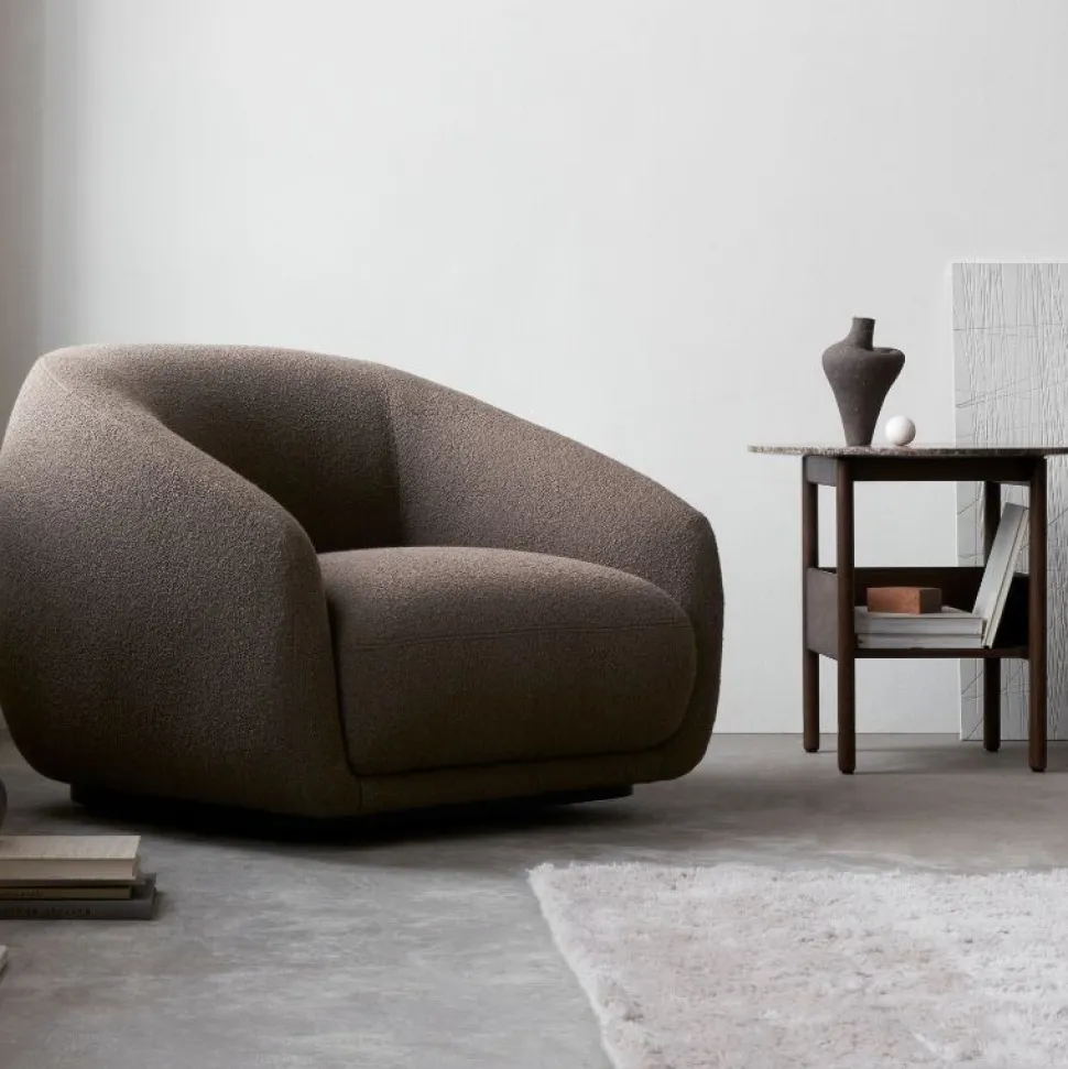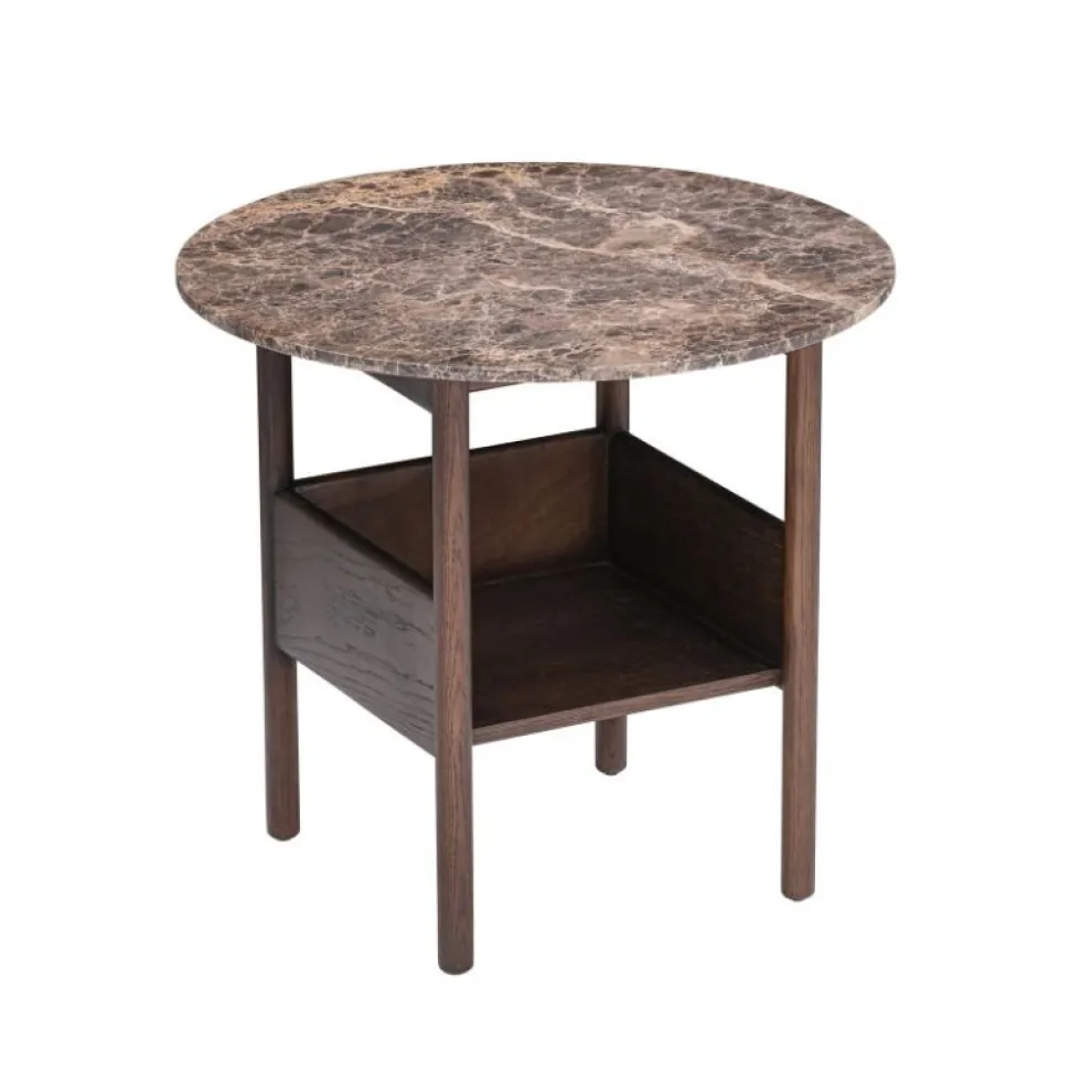 Raffinerede proportioner i elegant balance. Designer Jonas Wagell skaber en blød balance mellem materialerne. Varmen i det mørke træ og den brune Emperador-marmorbordplade fremmer en sanseoplevelse og tilføjer diskret elegance til ethvert rum.