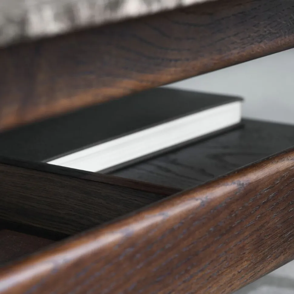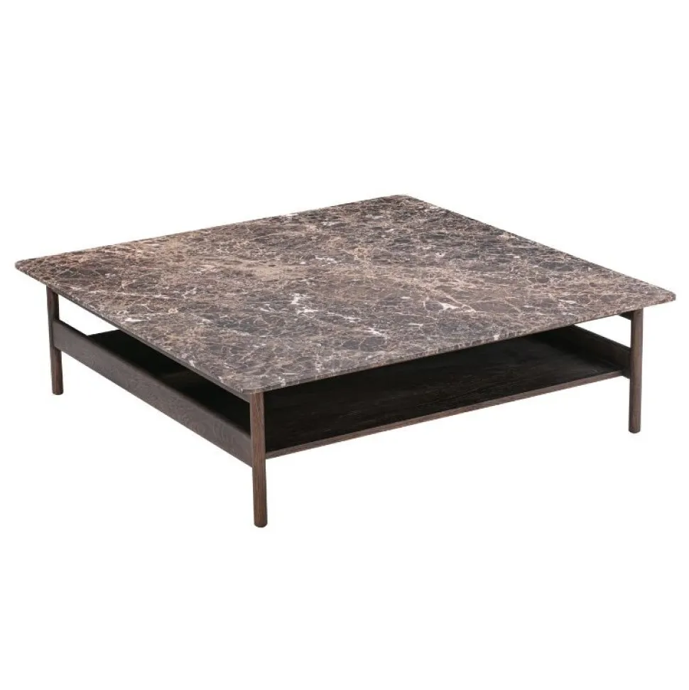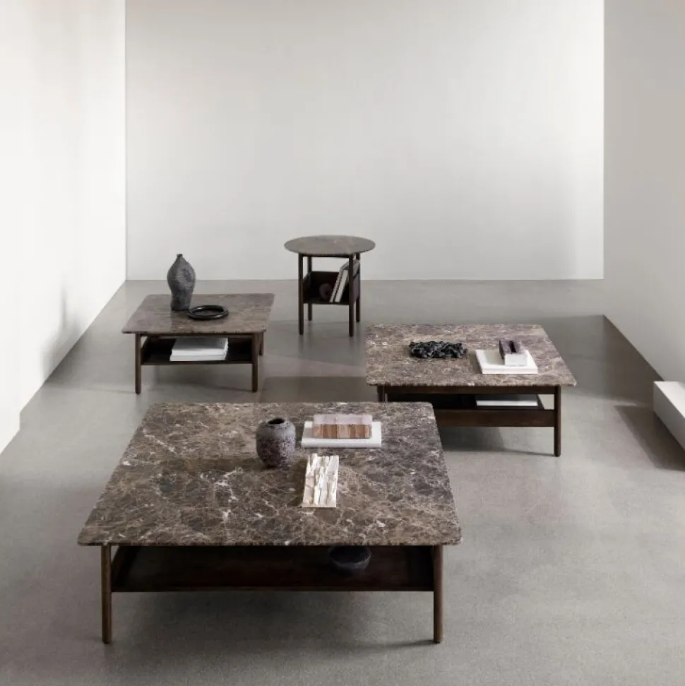 Raffinerede proportioner i elegant balance. Designer Jonas Wagell skaber en blød balance mellem materialerne. Varmen i det mørke træ og den brune Emperador-marmorbordplade fremmer en sanseoplevelse og tilføjer diskret elegance til ethvert rum.