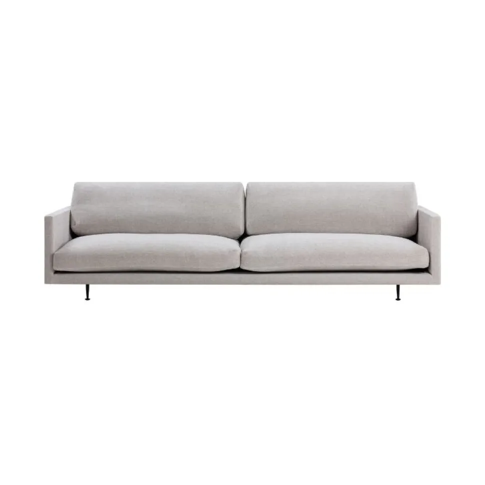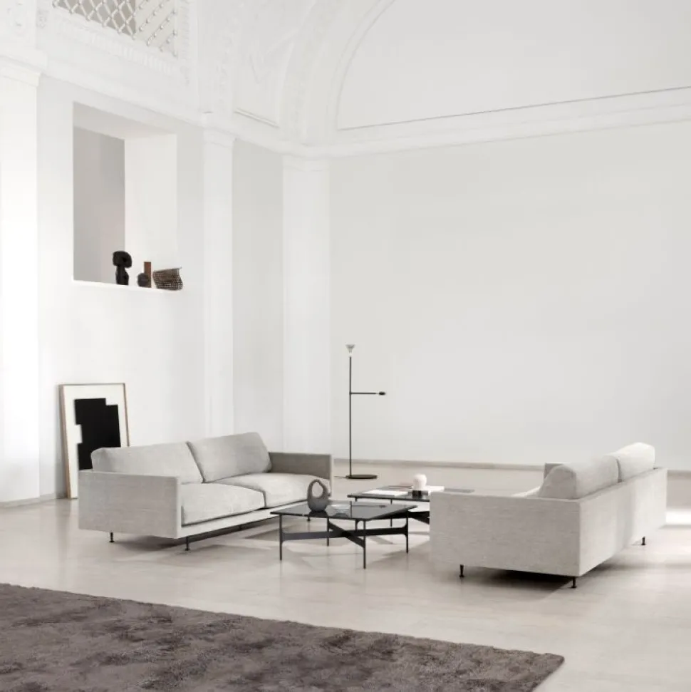 Elegant sofa der udstråler komfort. Maho er en voluminøs lavtliggende sofa som hviler oven på et slankt og skarpt defineret stel i sort pulverlakeret stål. Designet fås i to sædehøjder og en række polstringsmuligheder fra Wendelbos kuraterede redigering af tekstiler og læder.