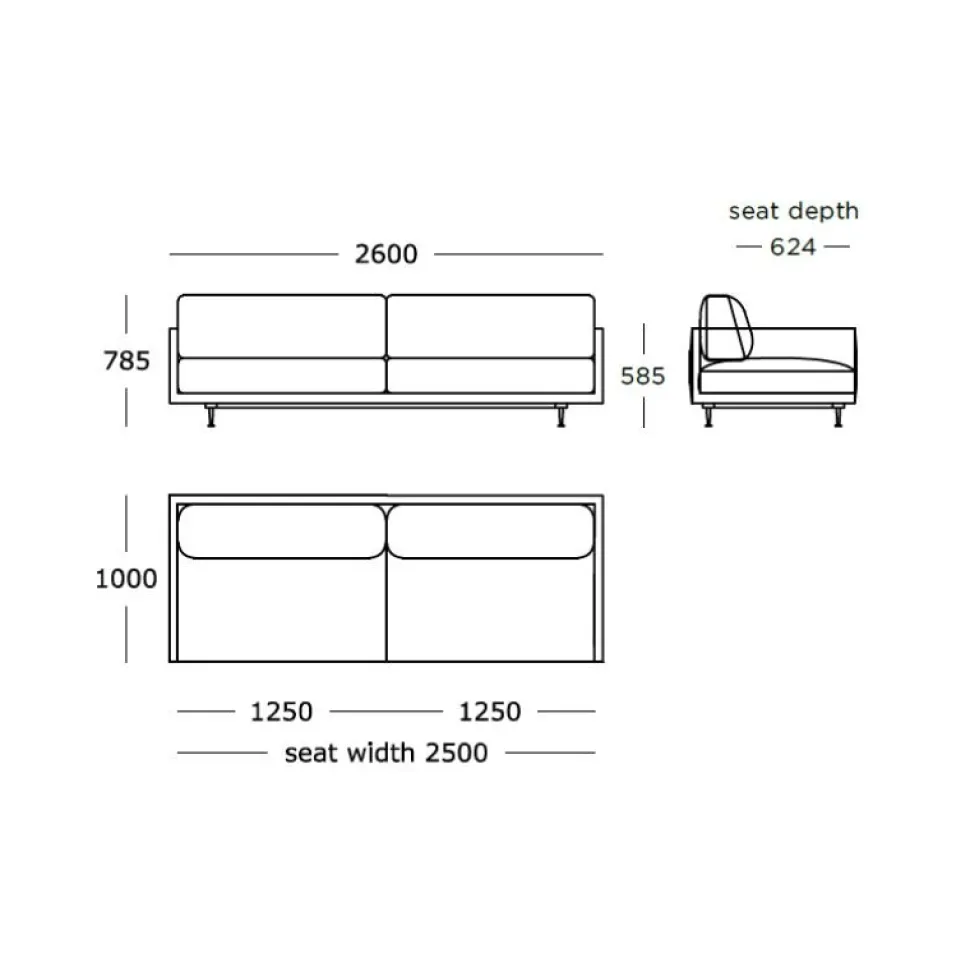 Mål: L 260 x H 78,5 x D 100 cm