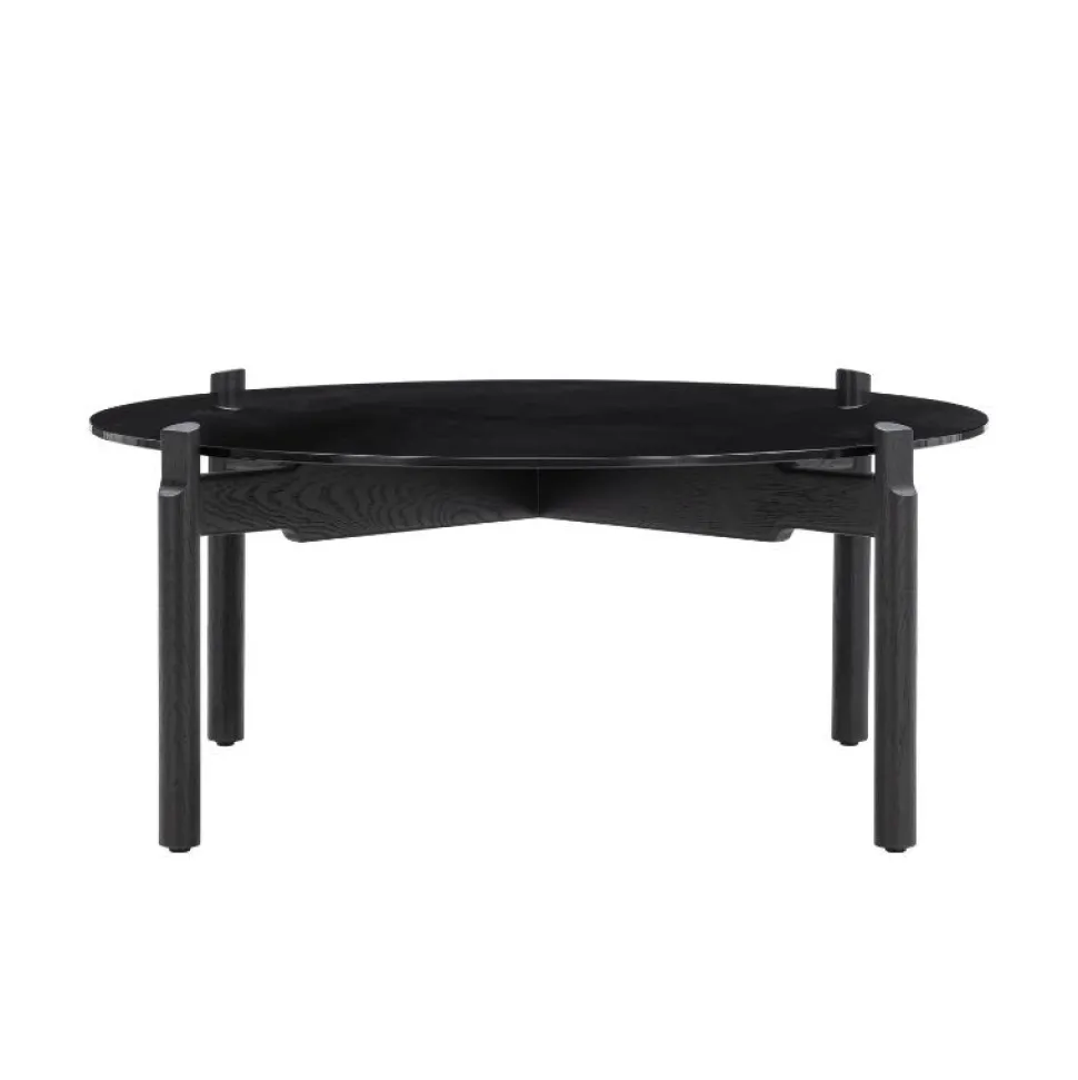 Notch-bordene fås i syv størrelser og former – der spænder over runde, firkantede og rektangulære borde. Designet af Gunther Pelgrims er kendetegnet ved en slående grafisk karakter. Den semi-transparente bordplade er lavet i sort glas med let affasede kanter og hviler oven på en ramme i sortbejdset eg med synlige årer, med bemærkelsesværdige møbelsnedkerdetaljer, der løfter designet yderligere.