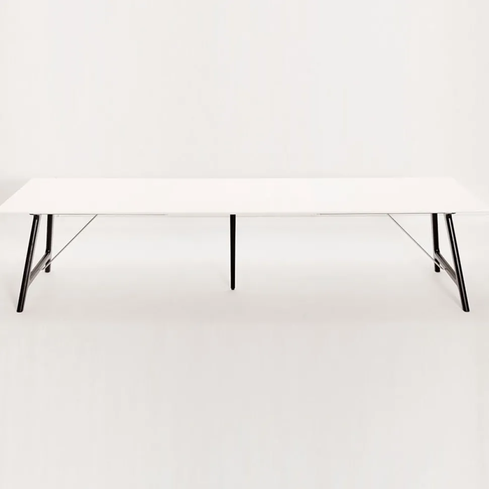 Bordpladen er fremstillet af gennemfarvet hvid laminat og understellet er i massivt eg. Udtræksbordet er behandlet med Wood Care overfladebehandling, som kræver minimal vedligeholdelse. Der er udtræk til tillægsplader, som let isættes og hurtigt giver ekstra plads ved bordet.