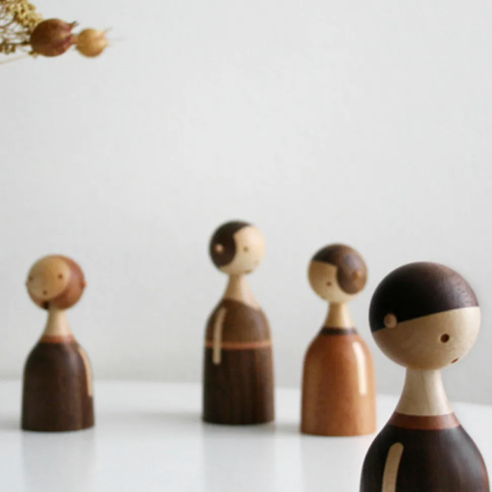 Figur af dreng fra Architectmades nye serie KIN. KIN er en skøn serie med figurer for hele familien, hvor de fine figurer kan skifte udtryk med deres vippende hoveder. Fremstillet af valnød, mahogni og ahorn.