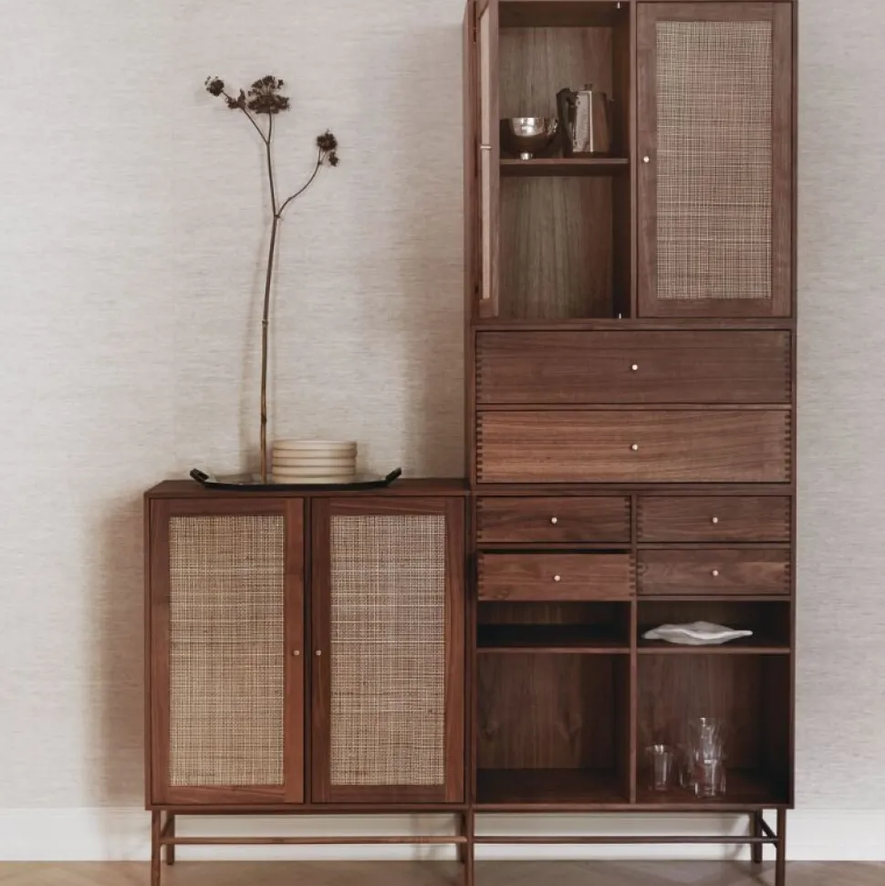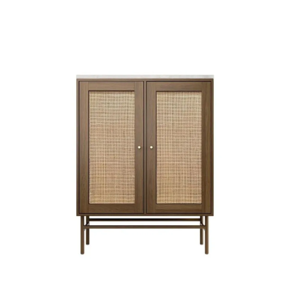 Konsolmodulet fra ATBO giver et luksuriøst og elegant element til din indretning. De lækre fletlåger giver en smuk kontrast til det massive valnød. Her er reolen vist med Italiensk marmor top plade, som kan tilkøbes. Alle ATBO reoler i massivt træ har unikke “Finger-tapping” samlinger.