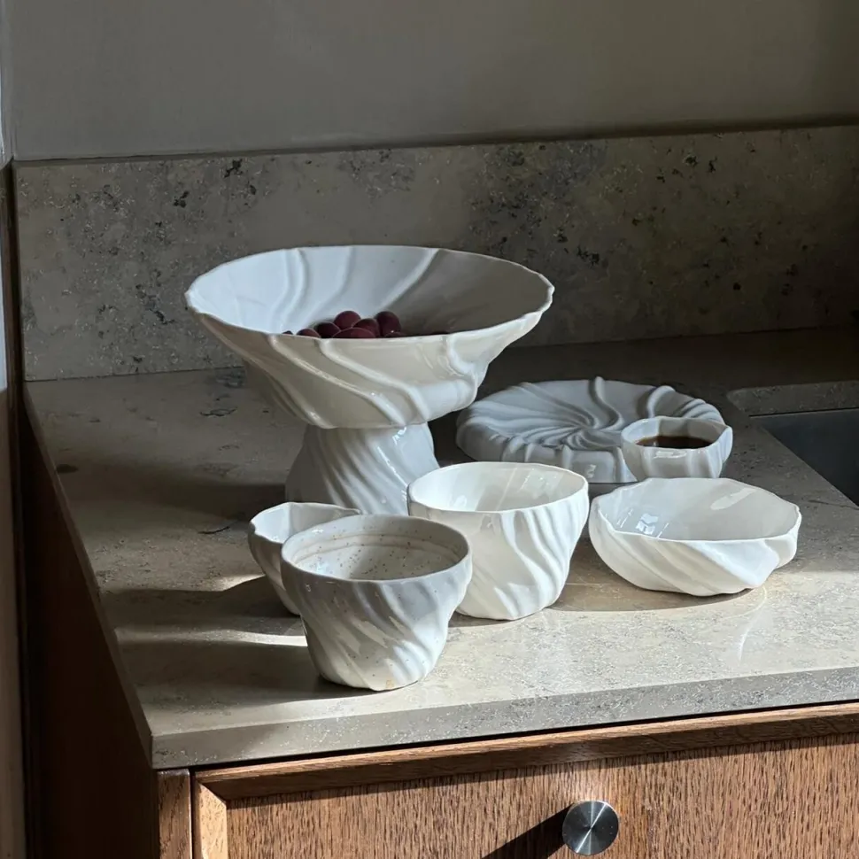 Stilfuld, æstetisk og håndlavet skål i det fineste hvide porcelænsler. Marée er fransk og betyder ‘tidevand’, hvilket ligeledes er skålens inspirationskilde. Snackskålen er således inspireret af Vadehavets bølgende sandbund, når vandet har trukket sig tilbage, hvormed den nøgne havbund blottes. Dét er det særlige ved dette foranderlige område. Designet er skabt med tidløshed for øje og kærlighed til håndværk, hvorfor der kan forekomme små variationer fra skål til skål.