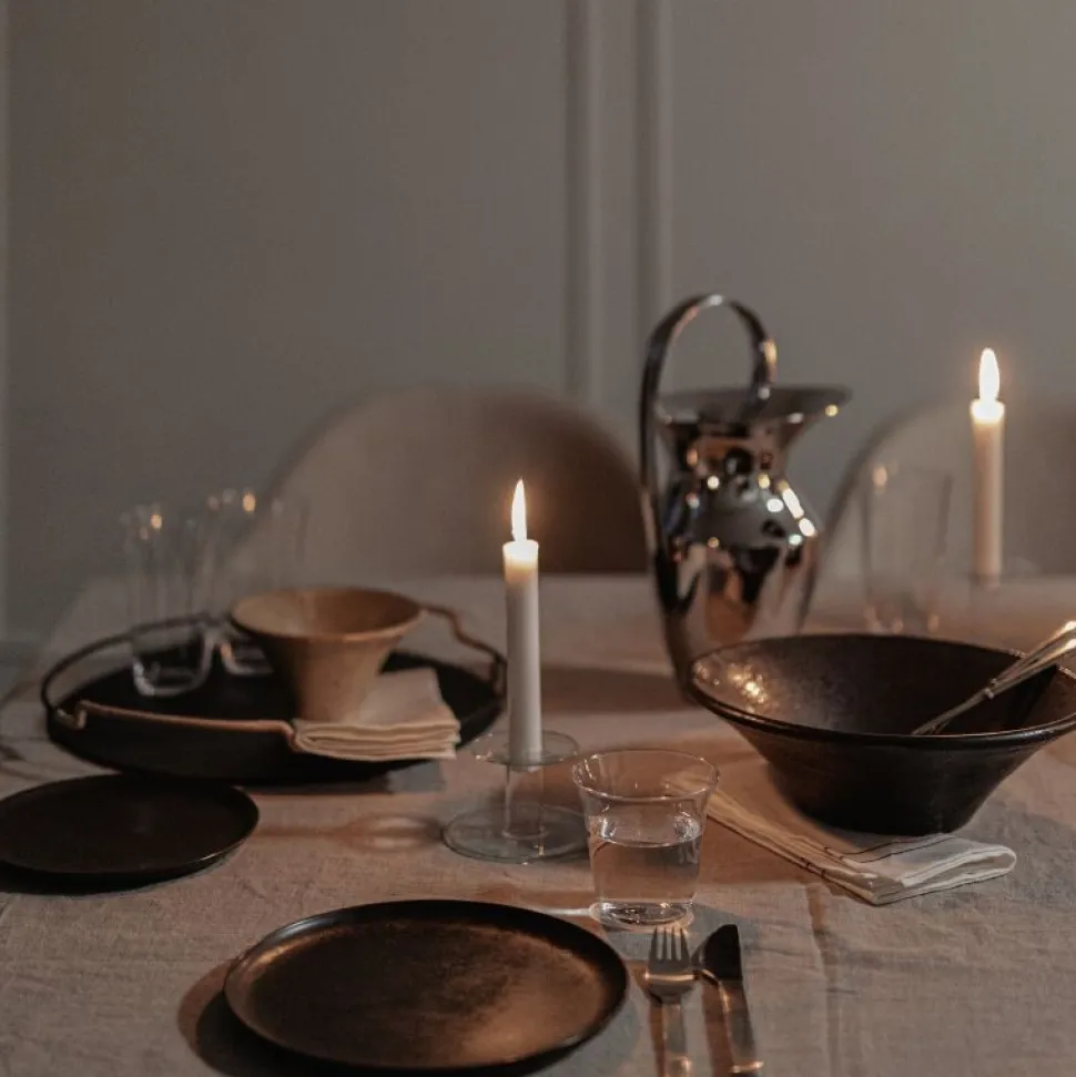Lige dele praktisk og smuk, den fejende silhuet af den etruskiske kande er formet af spejlpoleret rustfrit stål for et slidstærkt, men elegant finish. Dens overdrevne proportioner inkluderer et højt, buet tophåndtag og en tilspidset tud for nem hældning. Det voluminøse design giver et lige så modigt statement, når man serverer kølede drinks ved bordet, som det gør som et dekorativt objekt eller blomstervase.