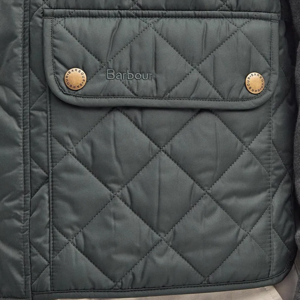 Klassisk quilt med moderne funktionalitet, der er inspireret af Barbours rødder i ride- og countrytradition. Fremstillet i det ikoniske diamantquiltede stof, kombinerer vesten tidløs æstetik med praktisk komfort. Designet er opdateret med en pasform og detaljer, der giver ekstra funktionalitet. Den høje stående krave med mikrofiberkant sikrer en blød fornemmelse og tilføjer varme, mens en tovejslynlås og trykknaplukning giver fleksibilitet. To rummelige patchlommer med knaplukning tilføjer praktisk opbevaring, og en stormklap med trykknapper hjælper med at holde vind og regn ude. En alsidig klassiker, der kan bæres alene eller som et ekstra lag – et elegant møde mellem arv, komfort og moderne funktionalitet.