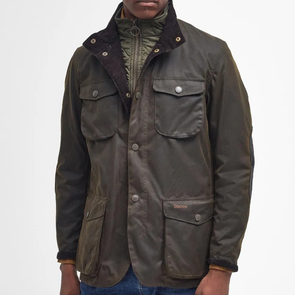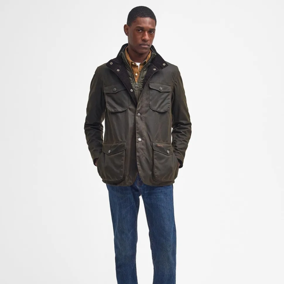 Maskulin og funktionel jakke skabt til at modstå vinterens udfordringer. Fremstillet i heavyweight Oban-vokset bomuld, leverer den pålidelig beskyttelse mod vind og vejr, mens den matte, ruskindslignende overflade giver et eksklusivt udtryk. Et integreret quiltet vestestykke tilføjer både varme og et udendørsinspireret look, som lukkes helt op til en stående krave med Barbour-brandet lynlås. Yderjakken forstærkes med robuste trykknapper, fire rummelige lommer samt signaturdetaljer som læderalbuepatches og corduroy-paneler. Indvendigt skaber en uldblanding i luksuriøs kvalitet et raffineret modspil til det slidstærke ydre – en balance mellem funktionalitet og elegance, der gør jakken til en ideel vinterklassiker. En tidløs jakke, der forener britisk arv, håndværk og funktionalitet i et afslappet, maskulint design med varig appel.