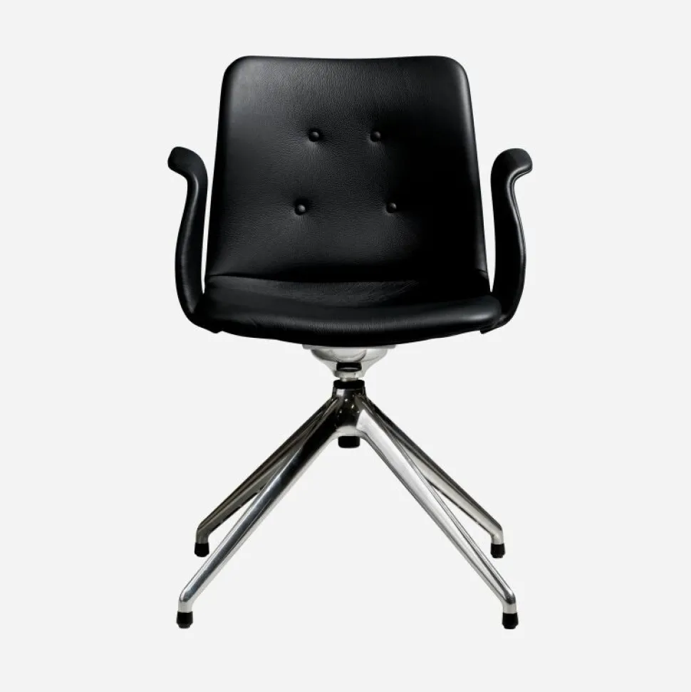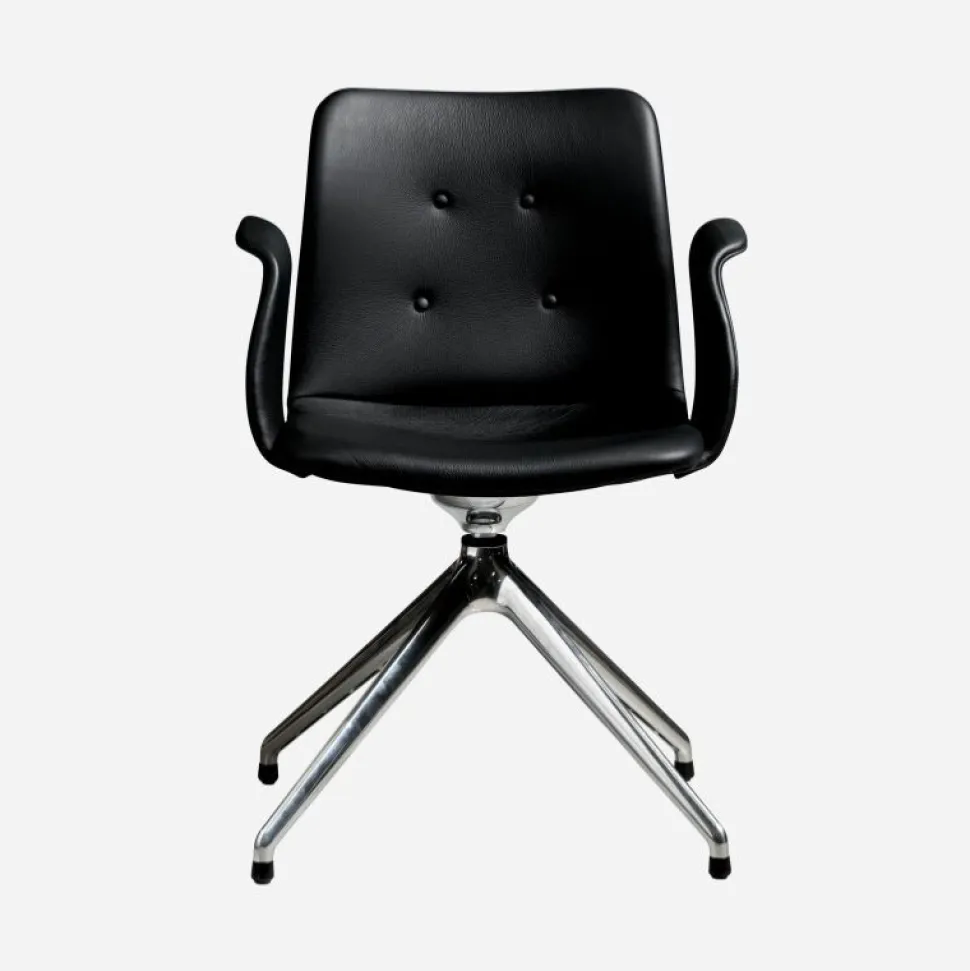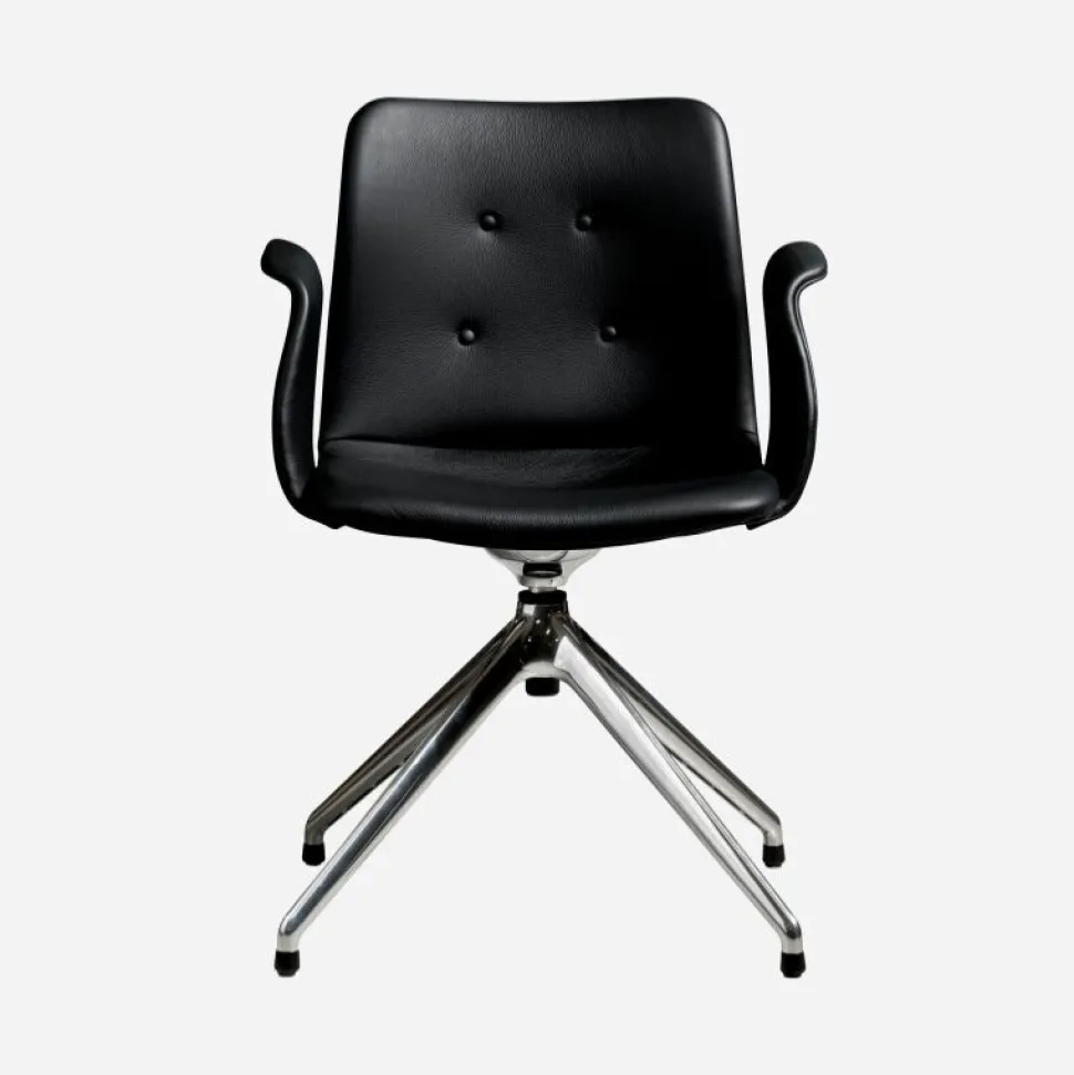En meget elegant spisebordsstol designet af Gumbo Studio. Primum er et meget moderne møbel, som virkelig har gjort sig bemærket indenfor dansk interiør design. Primum Chair følger din krops naturlige siddestillinger. Dreje- og tiltfunktionen sikrer, at du aldrig føler dig fastlåst, og det smarte returdrej sørger for, at stolen altid finder tilbage til sin udgangsposition, så udtrykket omkring bordet altid står knivskarpt.