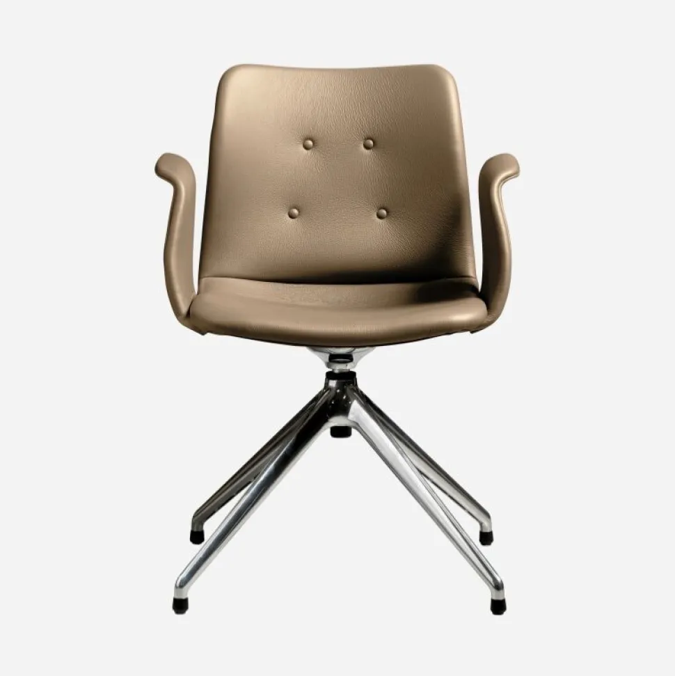 En meget elegant og yderst komfortabel spisebordsstol. Primum er et meget moderne møbel, som virkelig har gjort sig bemærket indenfor dansk interiør design. Primum Chair følger din krops naturlige siddestillinger. Dreje- og tiltfunktionen sikrer, at du aldrig føler dig fastlåst, og det smarte returdrej sørger for, at stolen altid finder tilbage til sin udgangsposition, så udtrykket omkring bordet altid står knivskarpt.