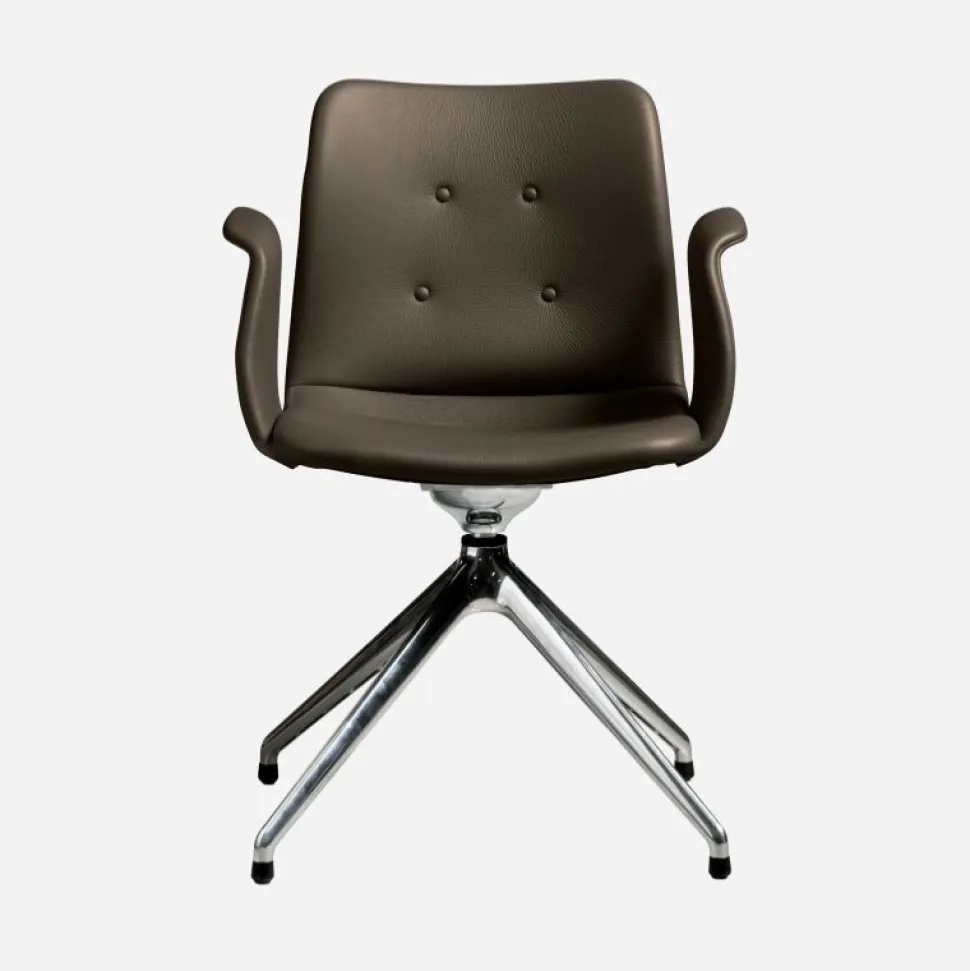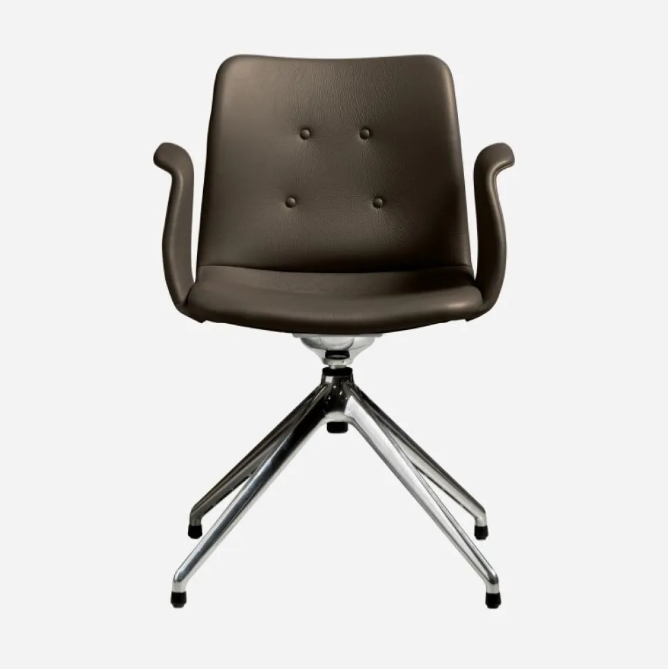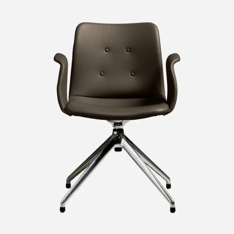 En meget elegant og yderst komfortabel spisebordsstol. Primum er et meget moderne møbel, som virkelig har gjort sig bemærket indenfor dansk interiør design. Primum Chair følger din krops naturlige siddestillinger. Dreje- og tiltfunktionen sikrer, at du aldrig føler dig fastlåst, og det smarte returdrej sørger for, at stolen altid finder tilbage til sin udgangsposition, så udtrykket omkring bordet altid står knivskarpt.