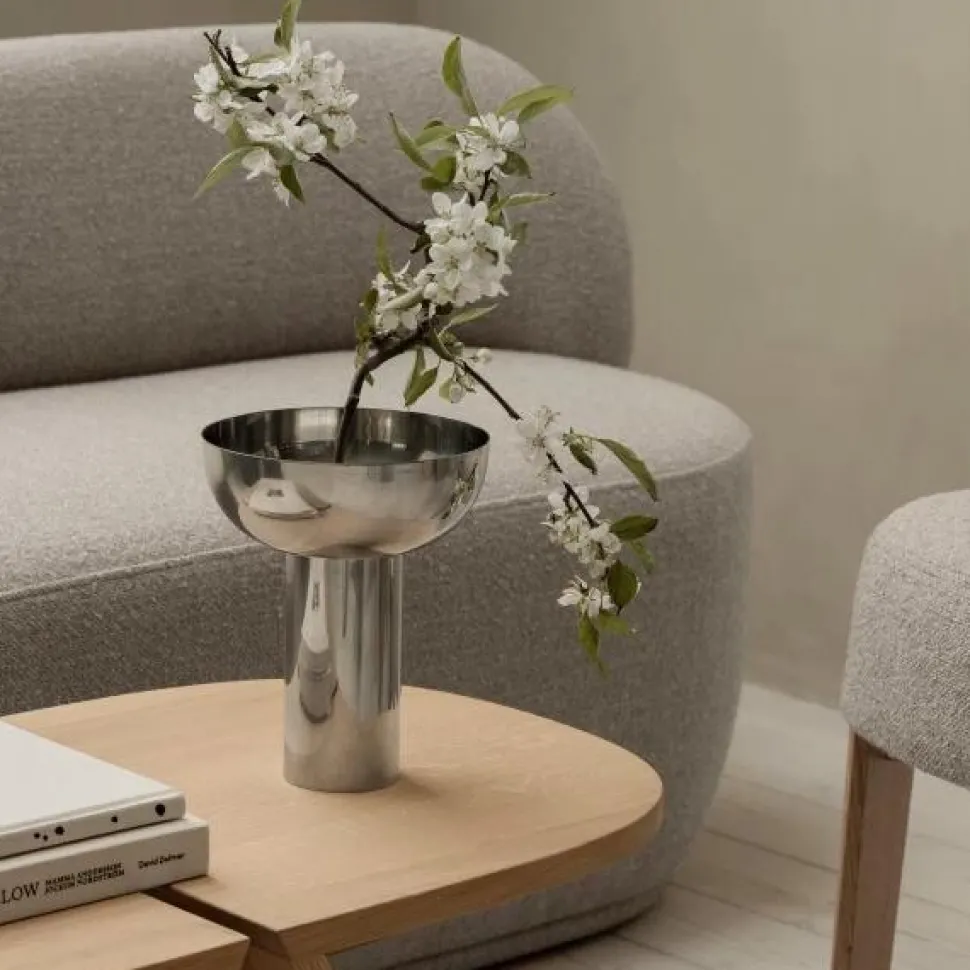 Moderne og stilren vase, der på fineste vis kombinerer elegance og funktionalitet. Inspirationskilden beror i kunsten af ikebana, som er en integreret del af japansk kultur – dét er en skånsom og opmærksom opsætning af blomster. Vasen er udført i et skulpturelt og raffineret udseende.