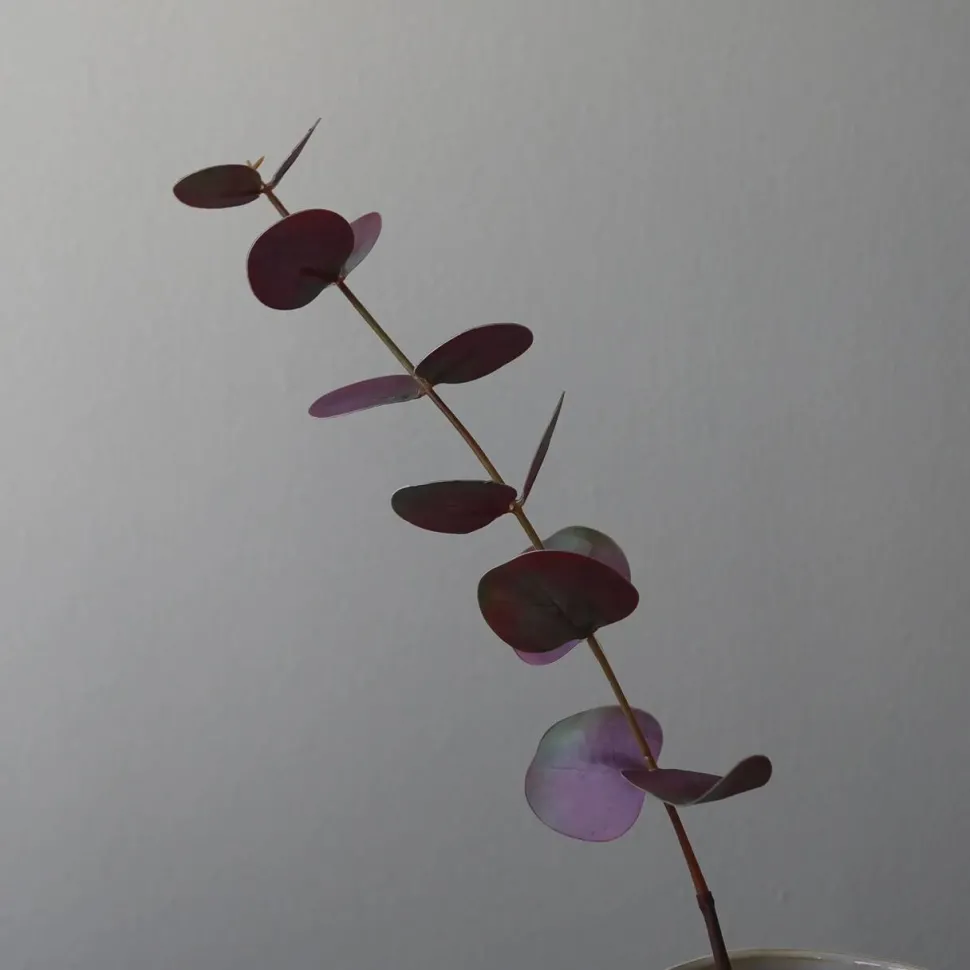 Lille og naturtro eukalyptusgren med støvede lillagrønne blade, der bringer et strejf af fredfyldt skønhed til ethvert blomsterarrangement. Grenen tilføjer et naturligt, jordagtigt element til boligindretningen, hvilket understøttes af bladenes subtile nuance, der tilføjer dybde og tekstur. Grenen er designet til at være alsidig, hvorfor stilken kan bøjes og formes efter eget ønske.