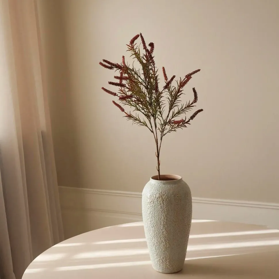 Enkel og fin Veronica-gren, der bringer en rustik, jordnær tone til boligindretningen. Desforuden tilfører bladenes subtile nuance både dybde og tekstur. Grenen er designet til at være alsidig, hvorfor stilken kan bøjes og formes efter eget ønske.