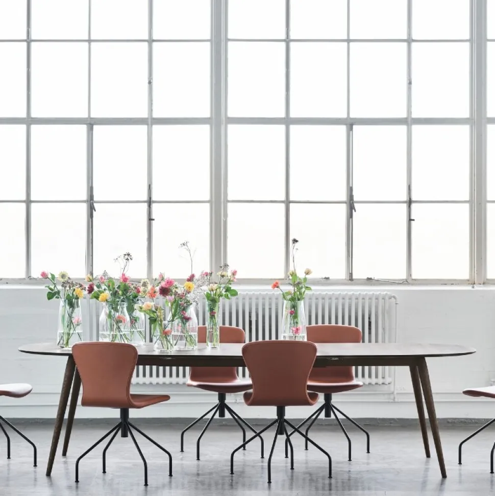 Enkelt og stilfuldt spisebord, hvis bløde kurver, robuste materialer og danske håndværk sikrer et tidløst design, som kun bliver smukkere med tiden. Bordet kan rumme alt fra en simpel familiemiddag til store middagsfester, idet der medfølger to tillægsplader i massivt egetræ, som elegant og kan opbevares inde i bordet.