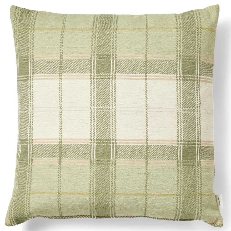 Stilfuld og dekorativ pude i den fineste farvekombination. Tekstilet er beriget med store tern i grønne nuancer, der tilfører et moderne touch til den enkle, skandinaviske stil, som præger mange hjem. Puden er klassisk og trendy på samme tid, hvorfor den er ideel at kombinere med andre tekstiler.