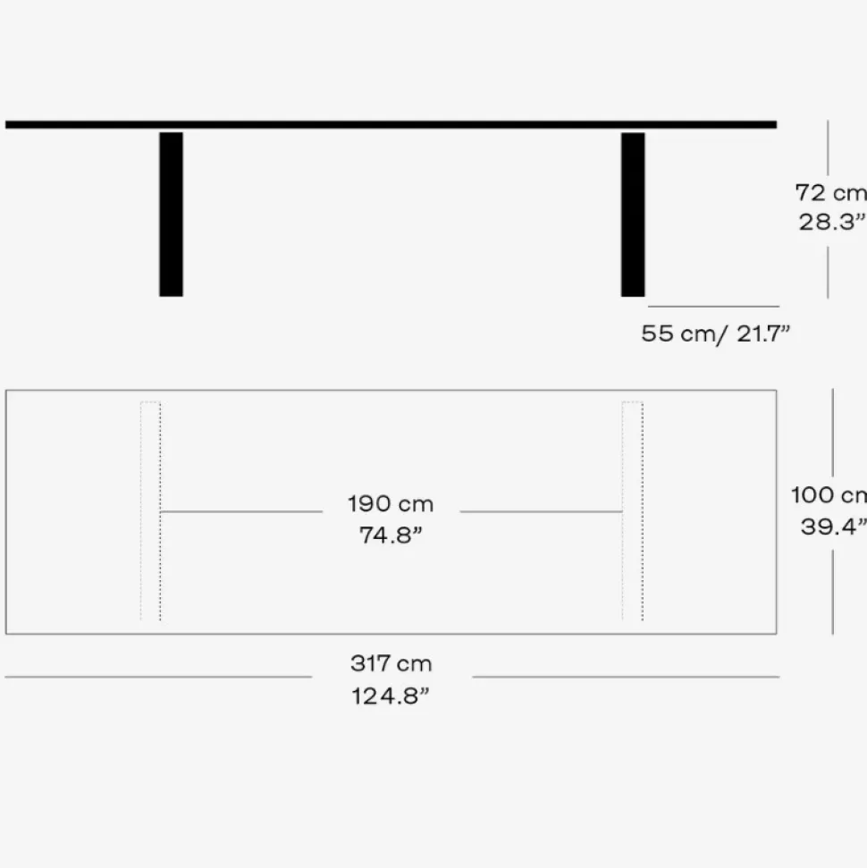 Bordet har god plads til ti personer og kan nemt udvides med de tilhørende CM100 tillægsplader, så der bliver plads til op til tolv personer – ideelt til både hverdagsmiddage og større sammenkomster.