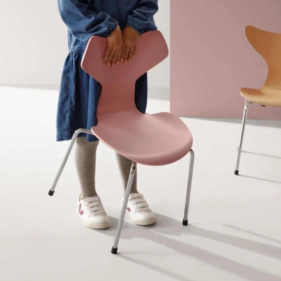 Ikonisk stol i børnehøjde. Grand Prix børnestolen er en perfekt nedskaleret version af Jacobsens prisvindende design, og er en oplagt introduktion til en livslang kærlighed til smukt, langtidsholdbart design. Stolen kan stables med Arne Jacobsens øvrige børnestole.