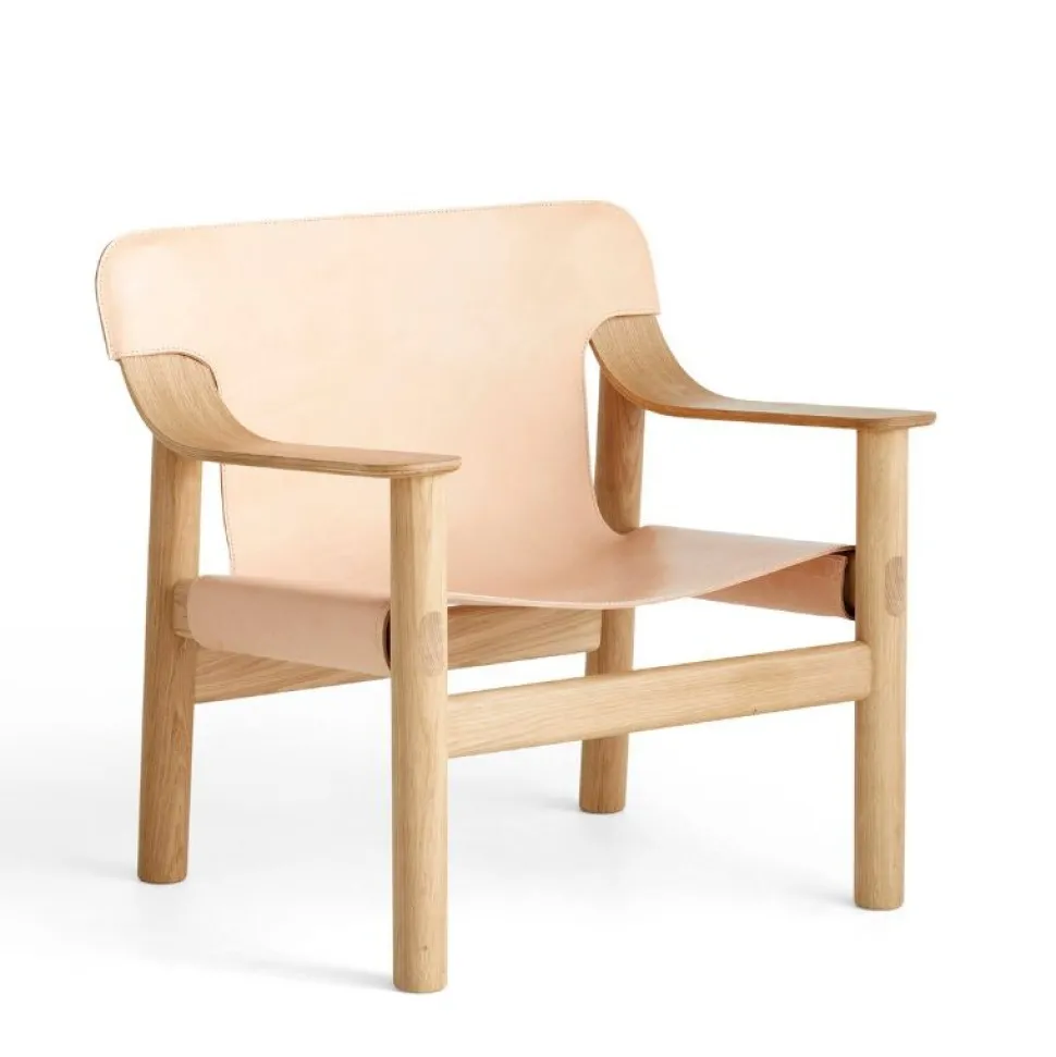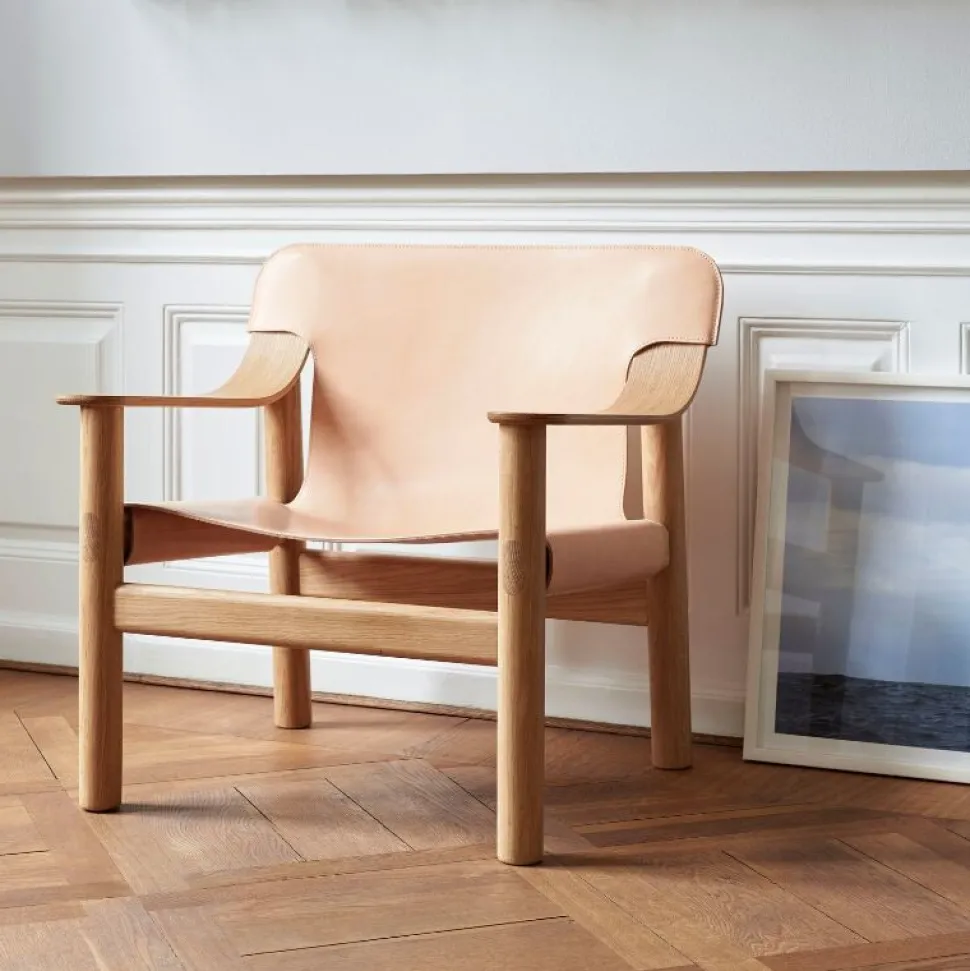 Shane Schnecks Bernard lænestol. Sammenstillingen af et stel af massivt træ med et visuelt let betræk skaber et unikt forhold mellem de to komponenter, hvilket resulterer i en komfortabel og holdbar stol med et karakteristisk formsprog. Rammen er fremstillet i massiv eg eller bøg med forskellige finish, og slip-on-coveret fås i læder eller industristyrket marinelærred.