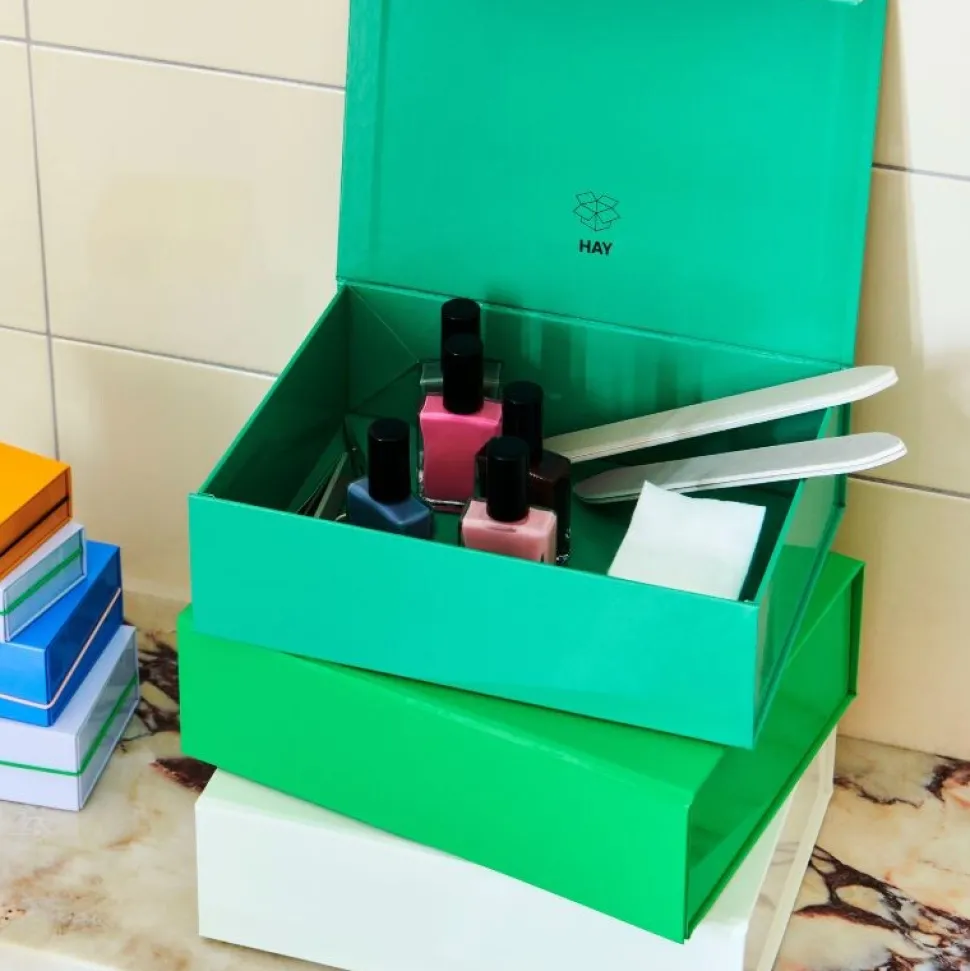 Denne farvefine æske er en multifunktionel og dekorativ opbevaringskasse. Æsken er fremstillet i en slidstærk, ekstra tyk FSC-certificeret papblanding med en smuk blank finish. Kassen er ideel til opbevaring og organisering af en lang række genstande, samtidig med at kassen kan stables med flere i farverige displays. Kassen er tilmed tilgængelig i andre størrelser og i et omfattende udvalg af farver.