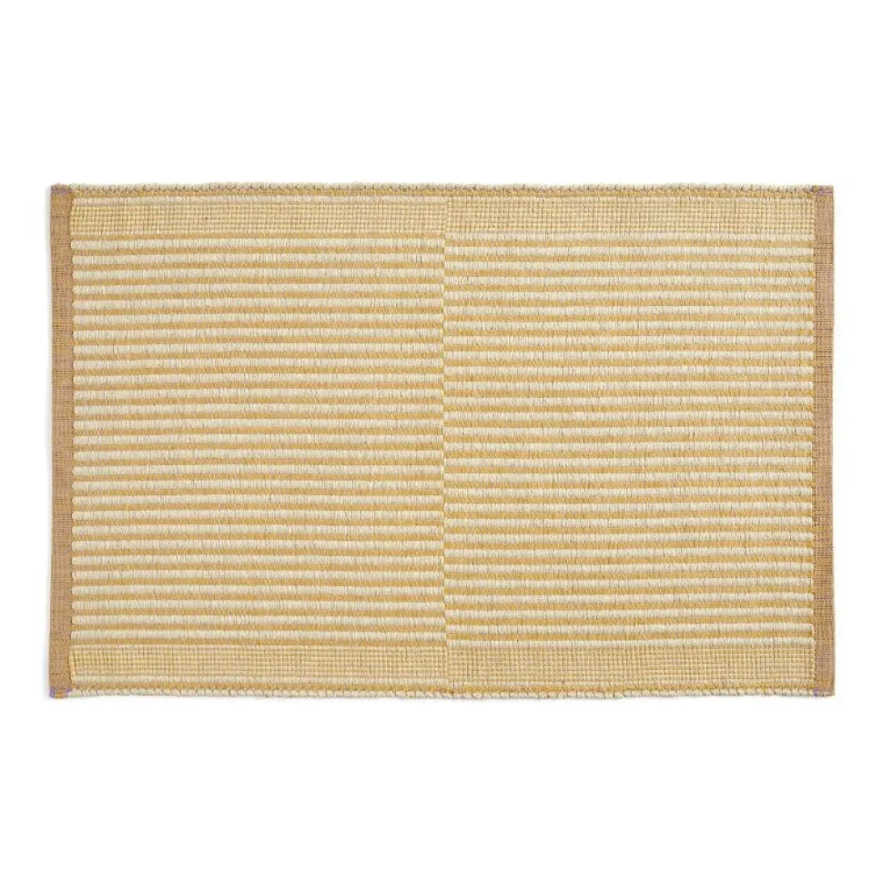 Fladvævet af en blanding af jute og bomuld, Tapis Mat tilføjer et naturligt, men alligevel raffineret udtryk til soveværelser, entre og andre områder i et hjem. Den fås i forskellige farvemuligheder og har en polyesterbagside for at sikre måtten på plads.