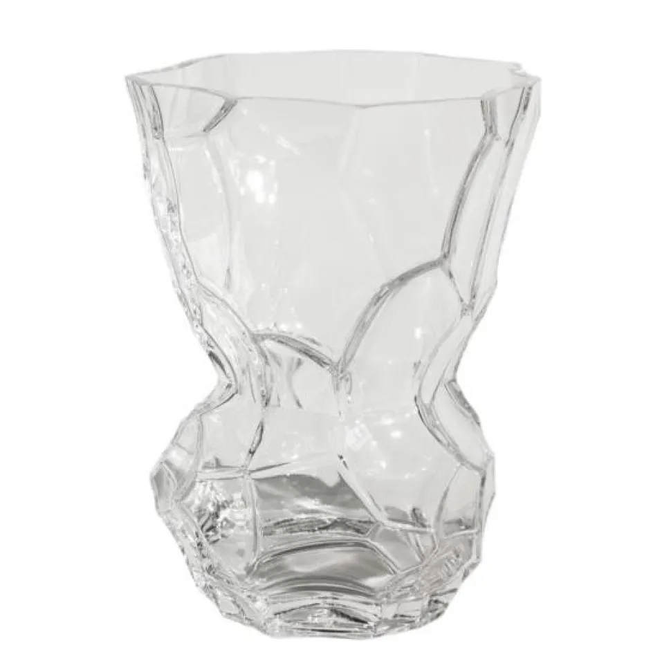 Eksklusiv og skulpturel vase, inspireret af de kolde bjergsøer i Schweiz, hvori bjergene reflekteres. Formsproget og strukturen tilfører en ro og friskhed. Formen er skabt i ét stort stykke – og med hver vinkel udskåret forskelligt, skabes et nyt perspektiv, når vasen roteres. Vasen er betagende – både med og uden blomster.