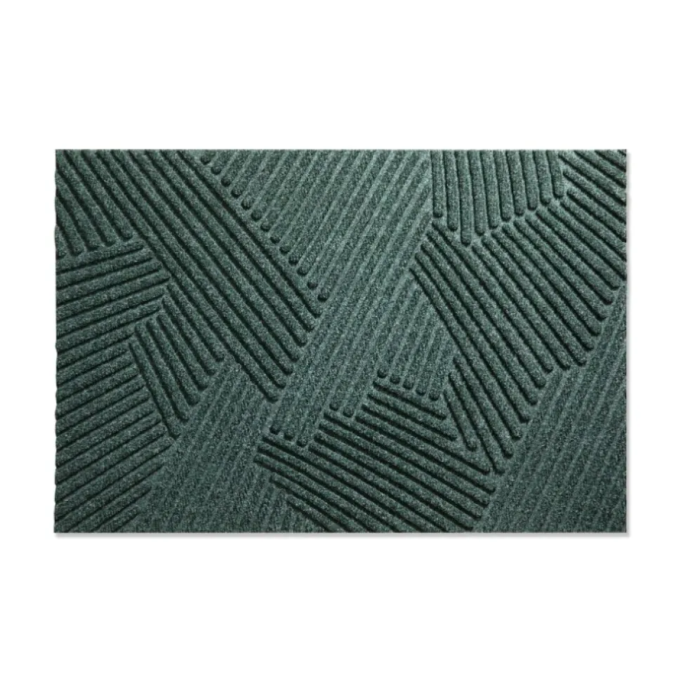 Funktionel og farvefin måtte, der er udført i et minimalistisk design. Måtten er inspireret af græs, der svajer i en varm sommerbrise, hvilket på fineste vis illustreres af et blødt, geometrisk design i en dyb grøn farvenuance. Det tredimensionelle mønster er taktilt og meditativt, hvorfor der skabes en rolig atmosfære ved dørtrinnet. Måtten er designet med en ru overflade og en gummieret bagside, hvorfor den er velegnet til både inden- og udendørs brug.