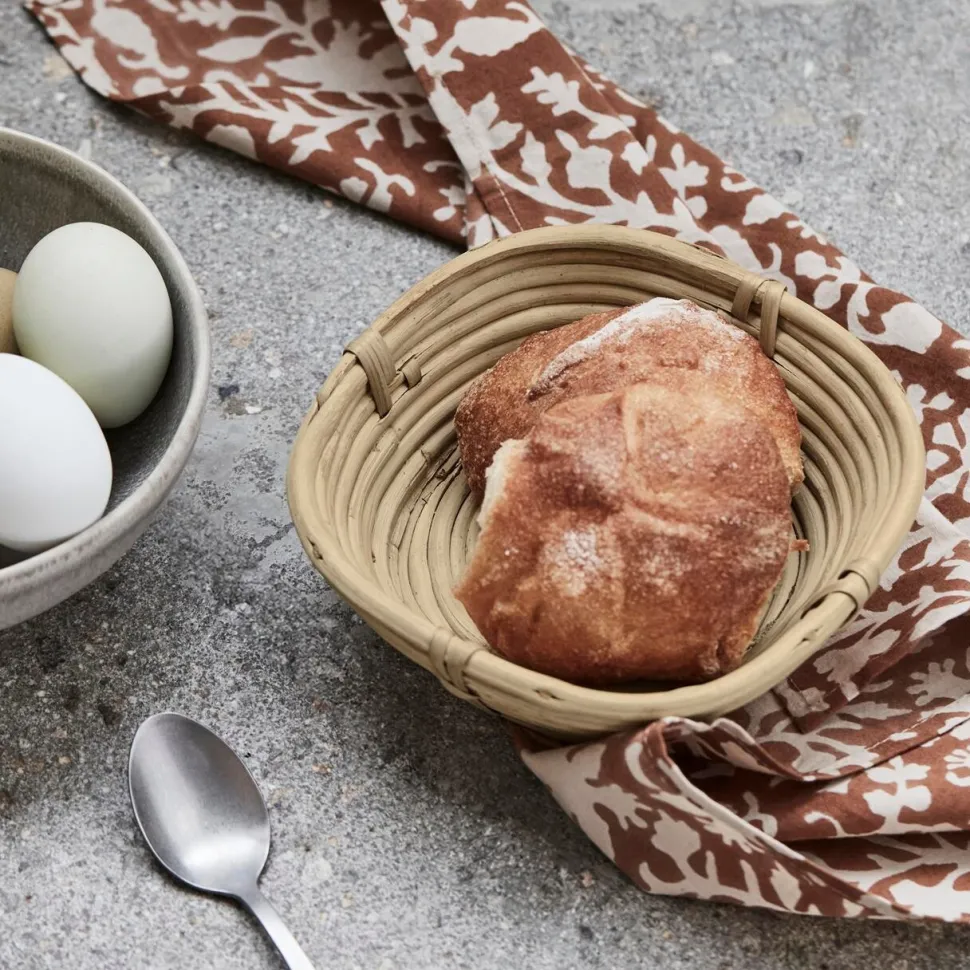 Håndvævet kurv, der tilføjer et strejf af rustik charme til køkkenet. Qua de varme farvenuancer og stilfulde design, er kurven både funktionel og dekorativ. Kurven er ideel til opbevaring af tørre fødevarer eller som en stilfuld brødkurv. Det udsøgte håndværk komplementerer enhver køkkenindretning.